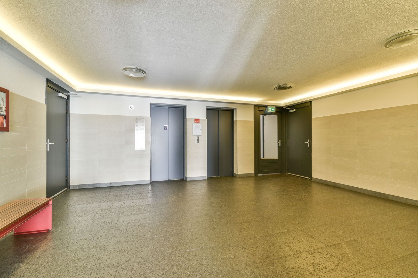 Representatieve, recent gerenoveerde entree met bellentableau en brievenbussen. Via de afgesloten hal bereikt u de lift en het trappenhuis.