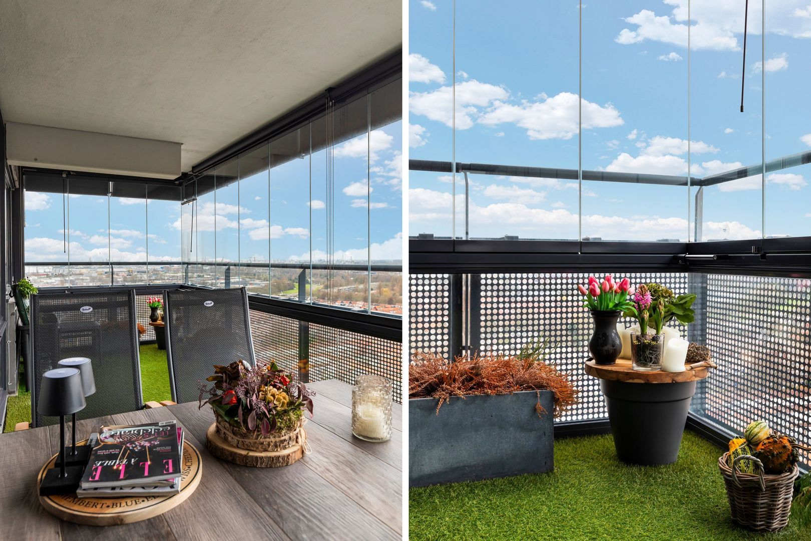 Vanuit de keuken bereikt u het ruimte balkon van ca. 15 m2. Het balkon is omgebouwd tot een exclusieve serre met fraai glaswerk (Metalura) welke tevens geopend kan worden. Het balkon heeft een zuidwestelijke ligging en biedt een weids uitzicht.