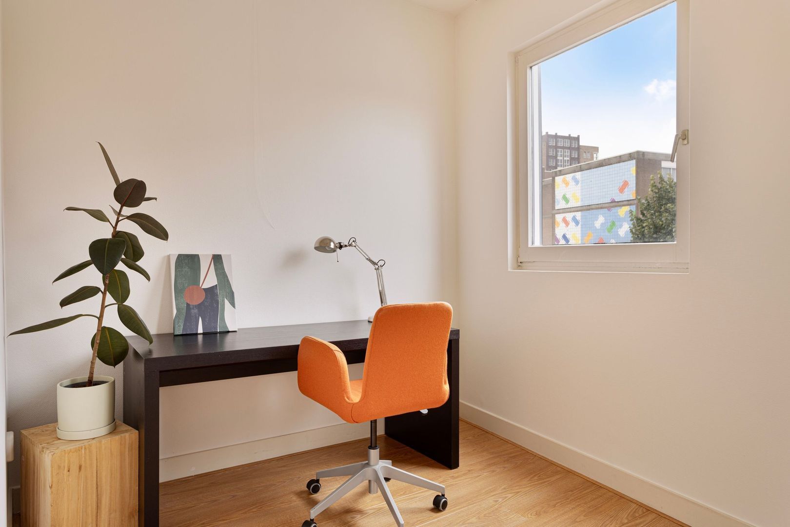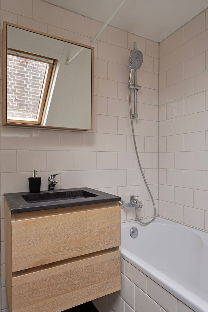 Op deze etage aan de achterzijde is nog een lekker lichte slaapkamer van 11 m2 met 2 ramen, laminaatvloer en hoog plafond.