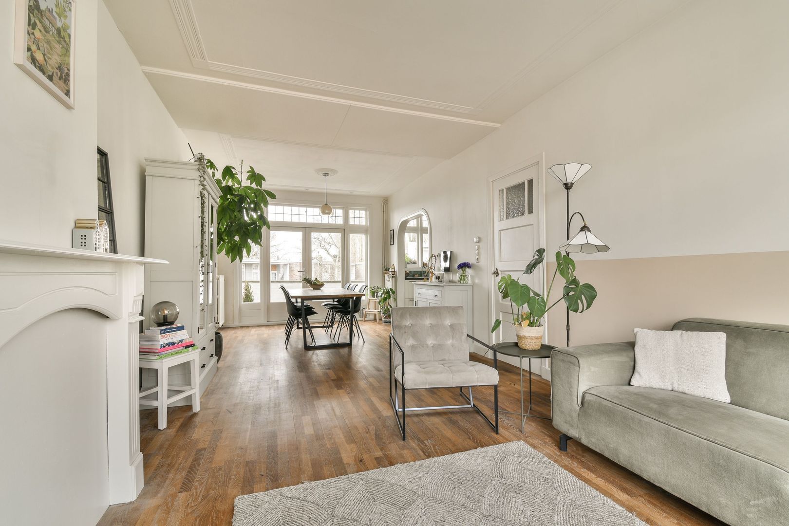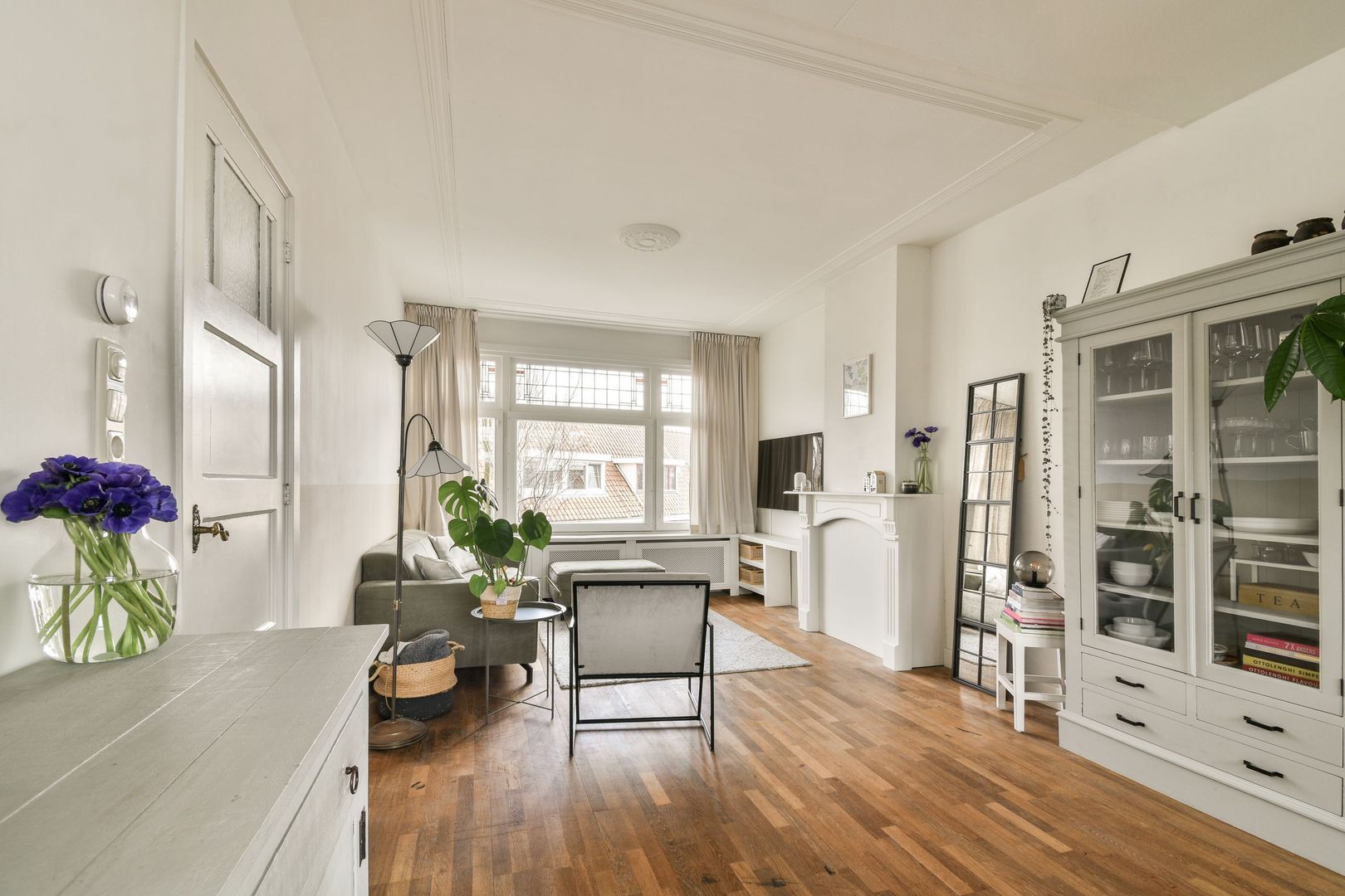 Ruime doorzonwoonkamer van maar liefst 8.53 meter diep en 3.48 meter breed. De woonkamer is voorzien van een fraaie parketvloer, structuurverf wanden en een mooi plafond met sierlijsten.