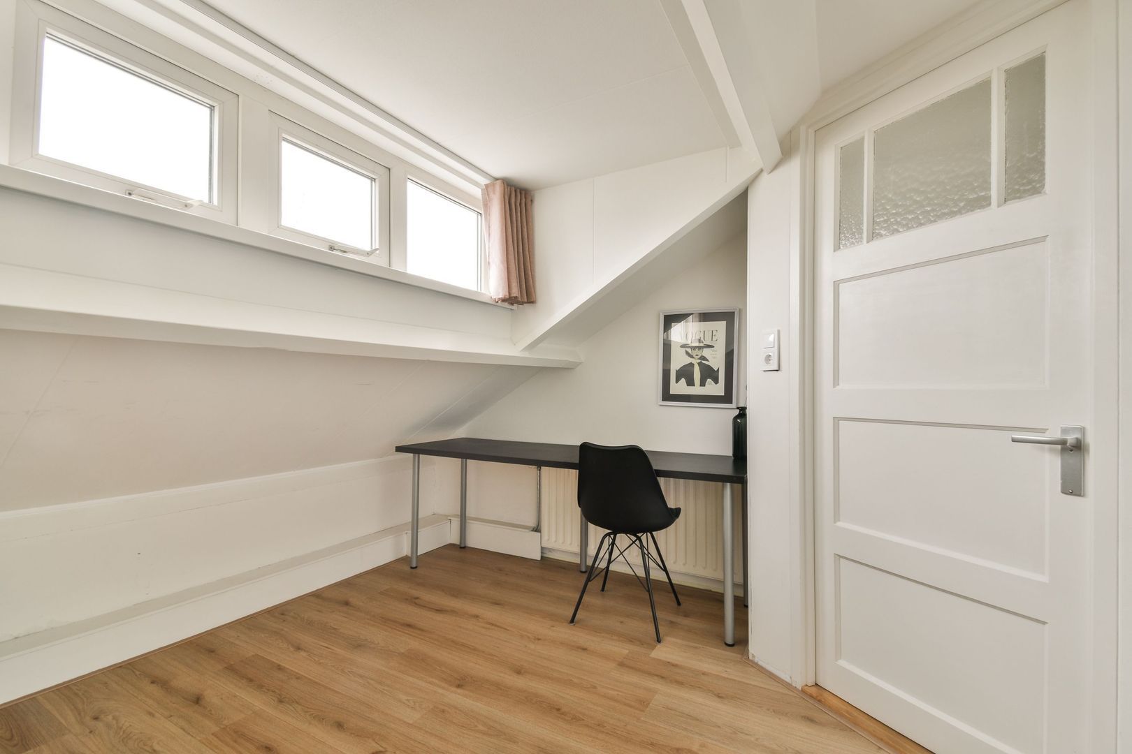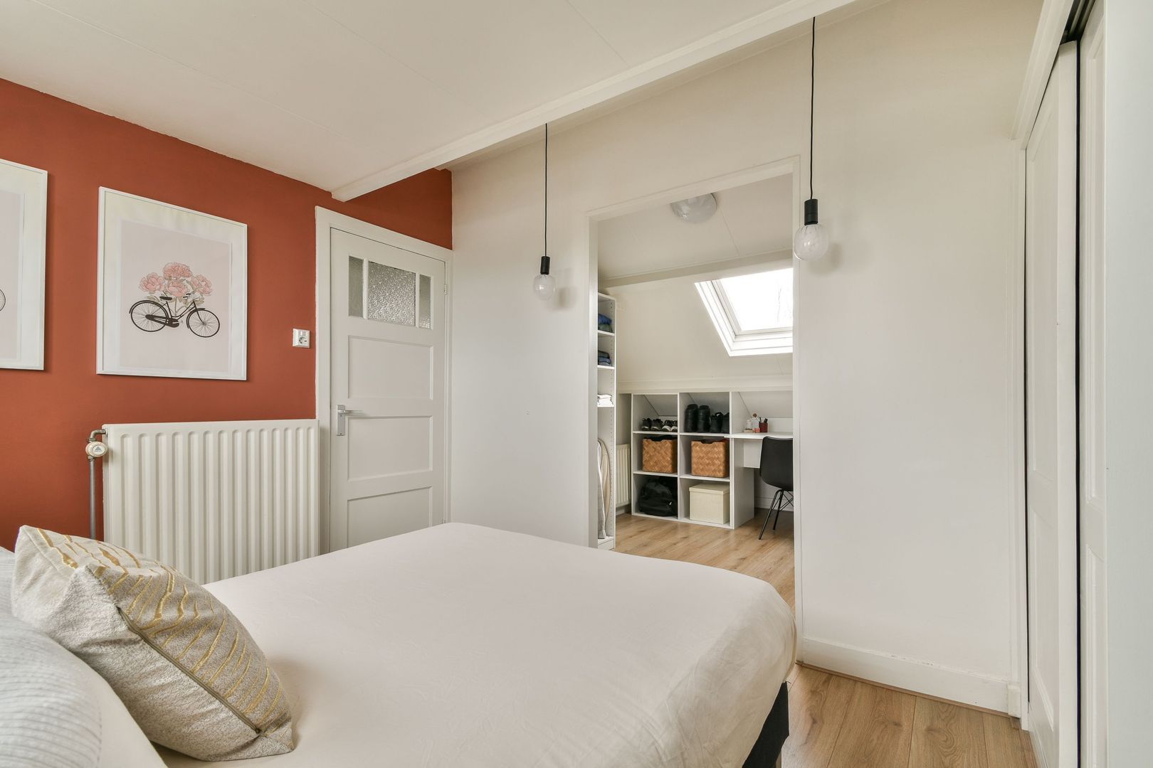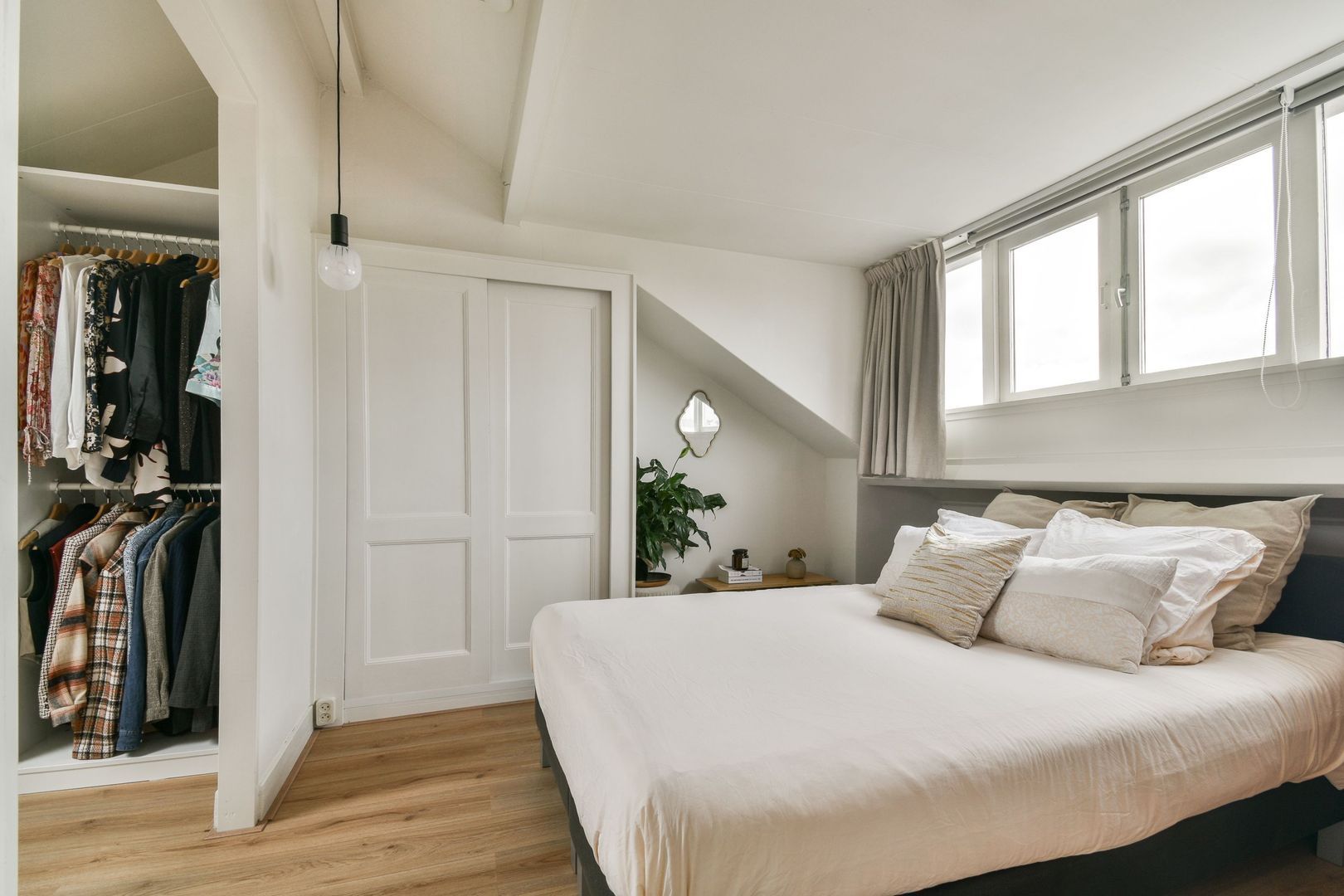 Ook aan opslagruimte is gedacht. Zo is er een vliering gerealiseerd en er zijn kasten onder de schuine delen op maat gemaakt.