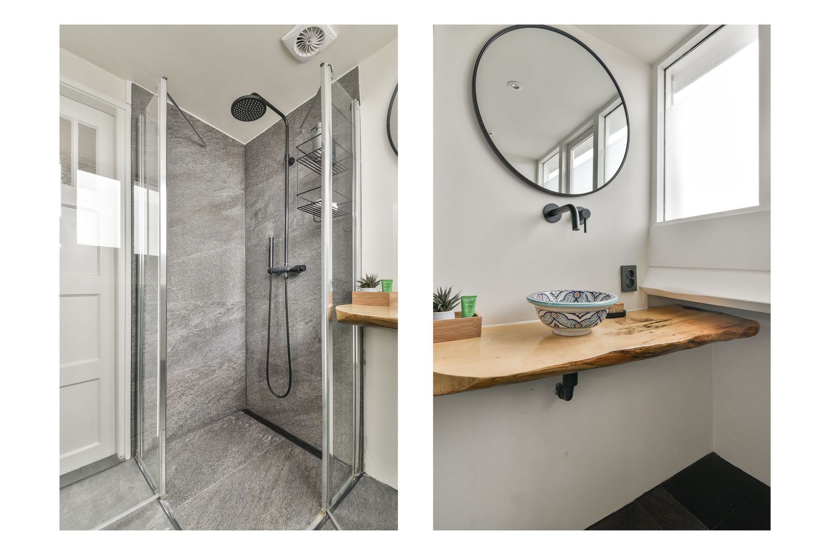 2 (voormalig 3) slaapkamers van respectievelijk ca. 11 m2, 8 m2 en 8,5 m2. Moderne badkamer met luxe betegeling, douchehoek met glazen spatscherm en sfeervolle wastafel.