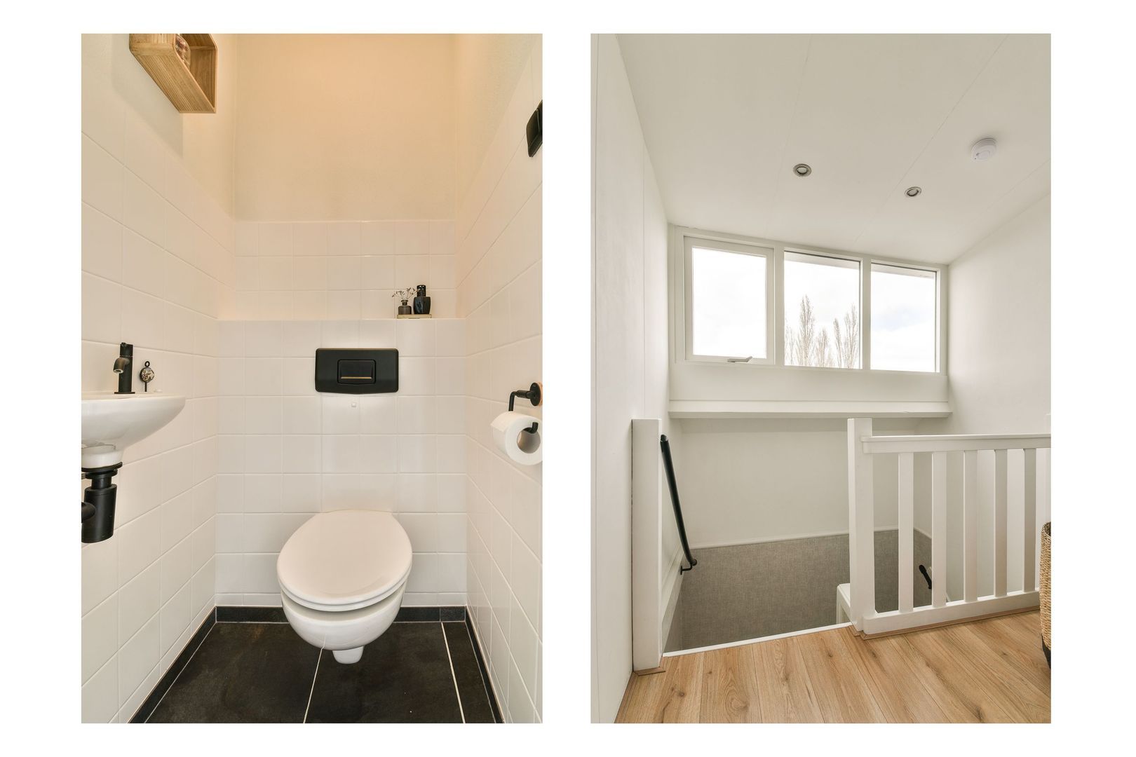 Overloop met ruime garderobekast, toiletruimte en toegang tot de slaapkamer en woonkamer.