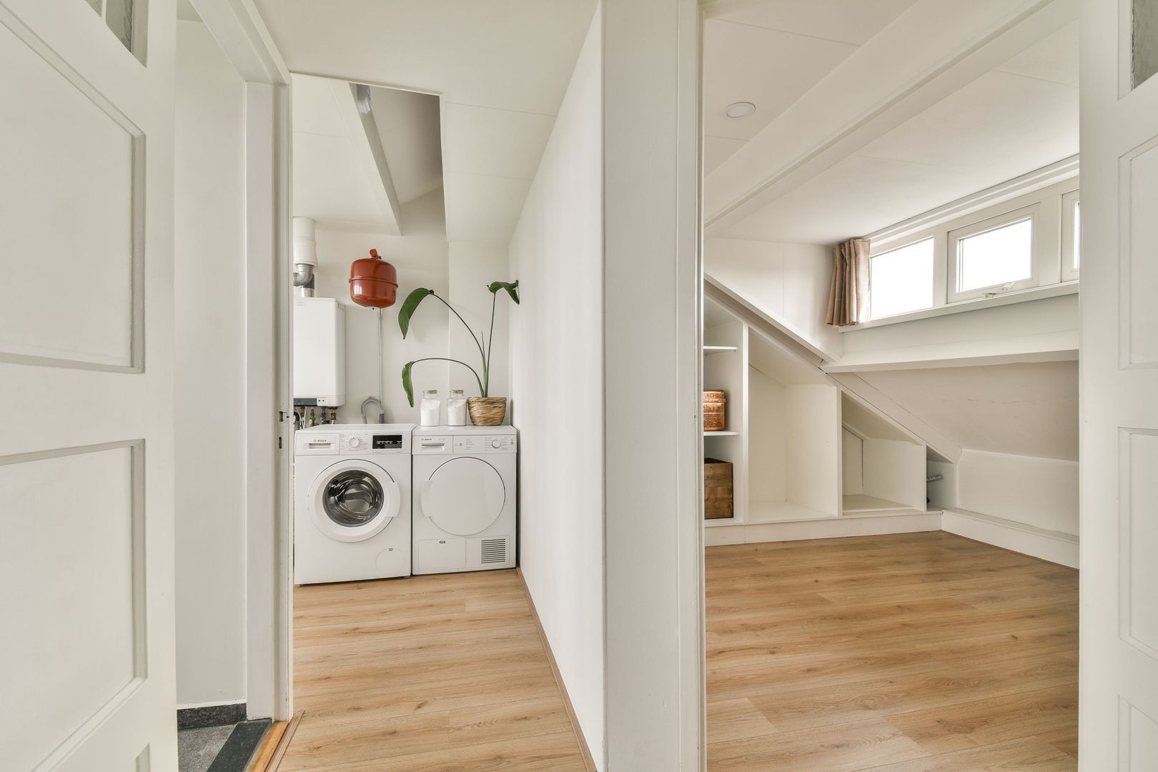 Ruime overloop met wasmachineaansluiting en opstelling CV-ketel.