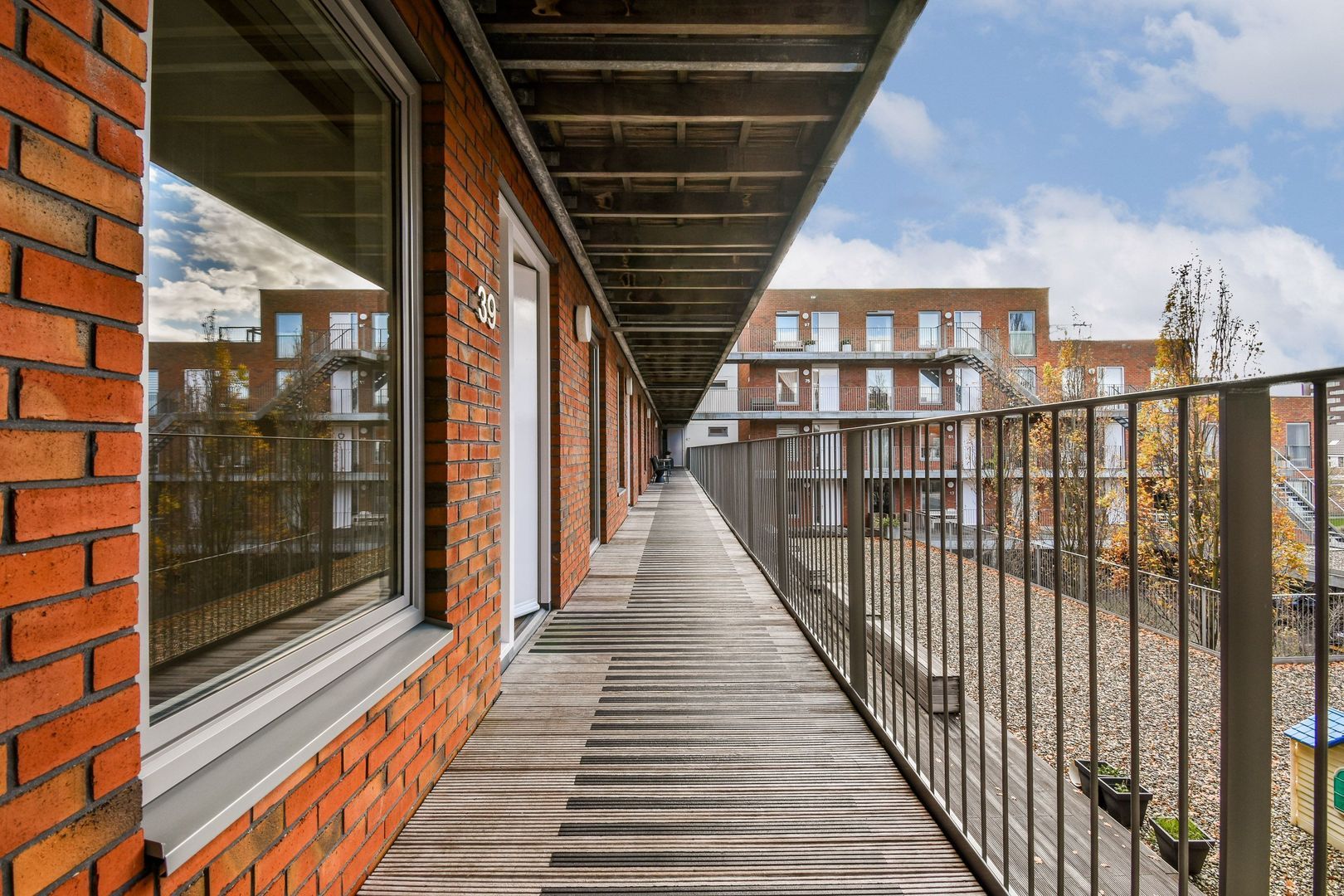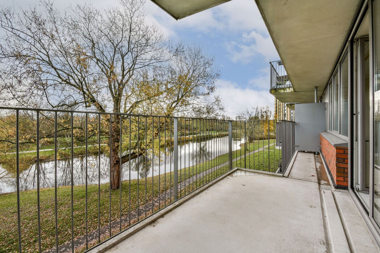 Vanuit de woonkamer geven openslaande deuren toegang tot het balkon op het Oosten van ca. 18,5 m2 met een breed zitgedeelte en een "zeemgedeelte".