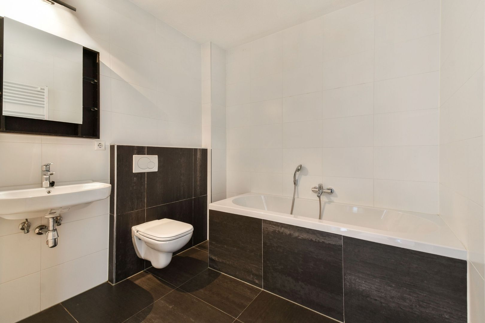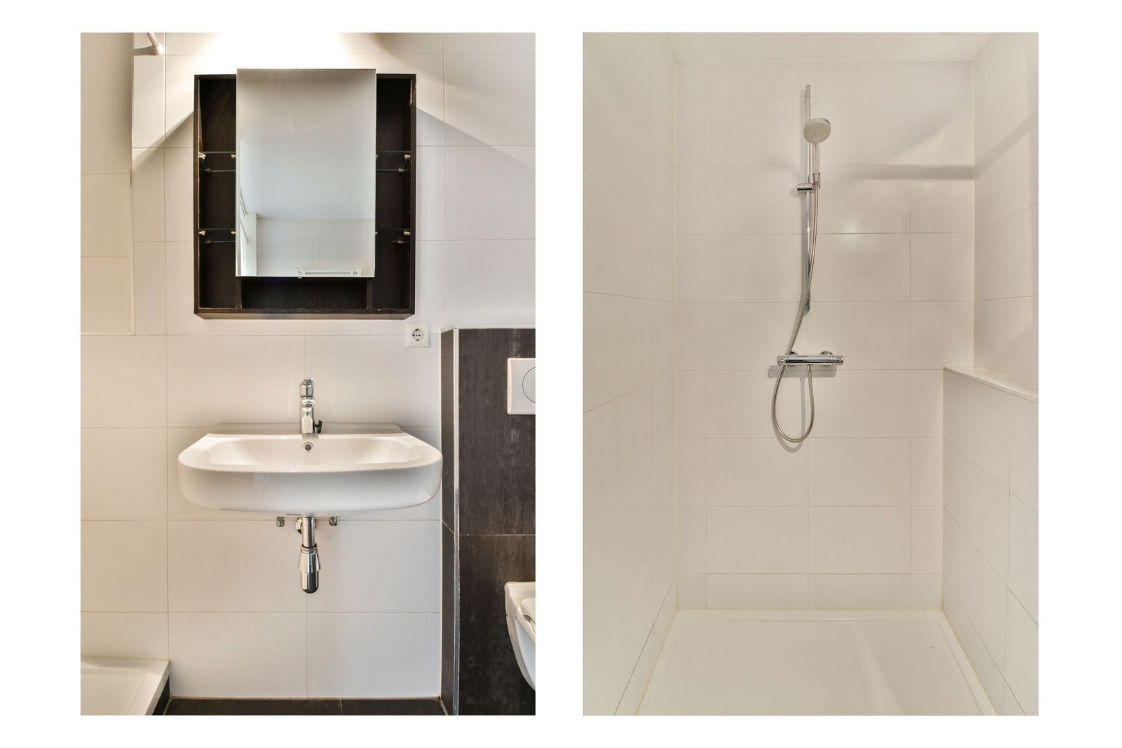 Geheel betegelde badkamer met ligbad, aparte douche, wastafel en hangend toilet. Aparte wasruimte van bijna 5 m2 met een vaste kastenwand. Het gehele appartement is voorzien van een keurige laminaatvloer.