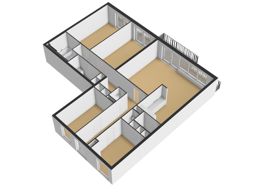 De hoofdslaapkamer aan de balkonzijde is bijna 21 m2 groot! Slaapkamer 2 heeft een oppervlakte van ca. 20 m2. Deze kamer kan dus eventueel aan de woonkamer toegevoegd worden. Beide slaapkamers hebben openslaande deuren naar het balkon. Slaapkamer 3 en 4 liggen aan galerijzijde. Deze zijn respectievelijk ca. 11 en 12 m2 groot.