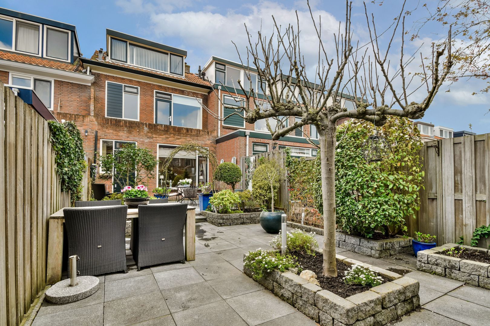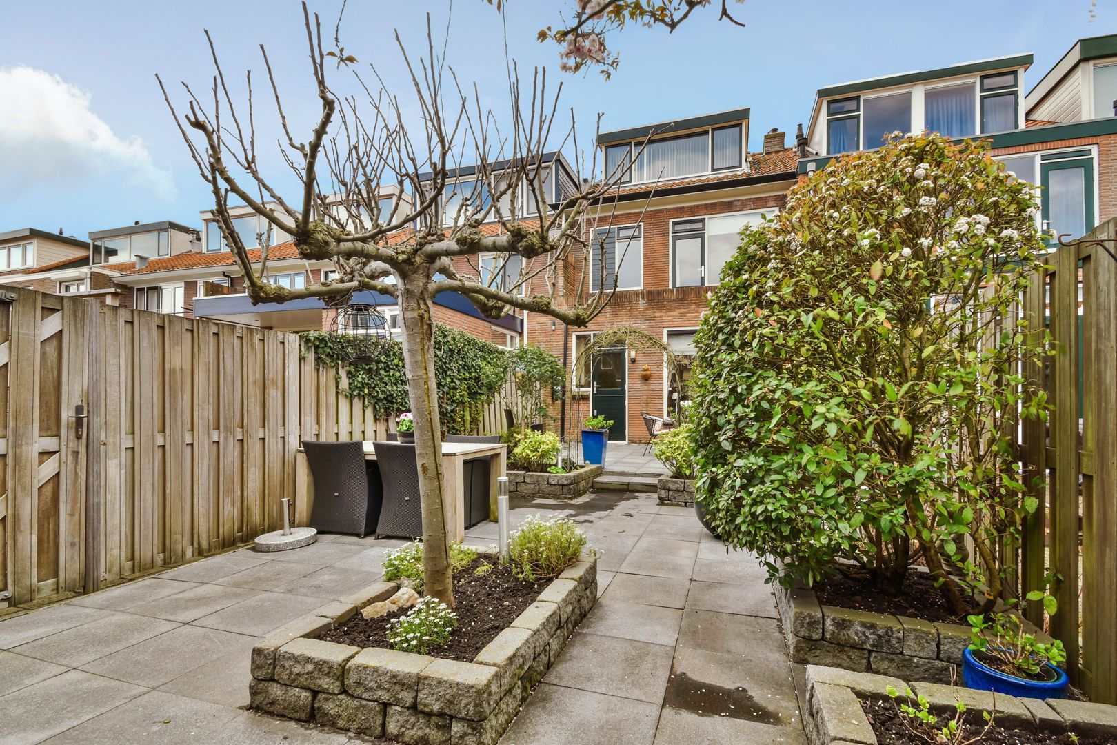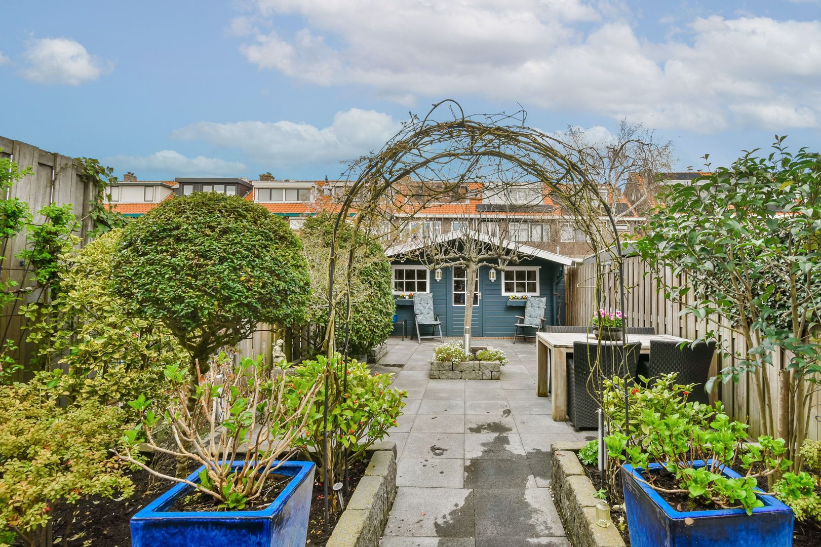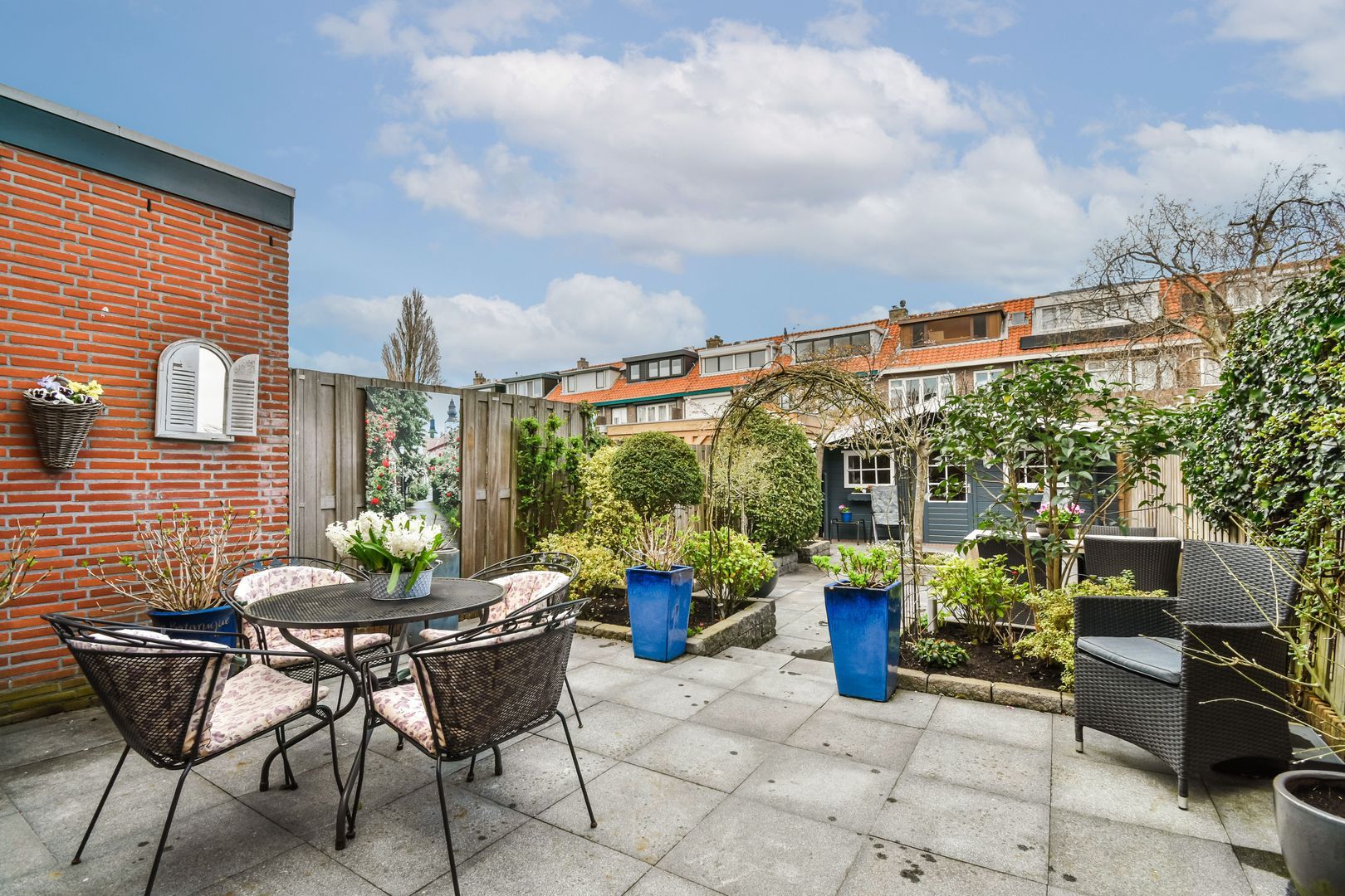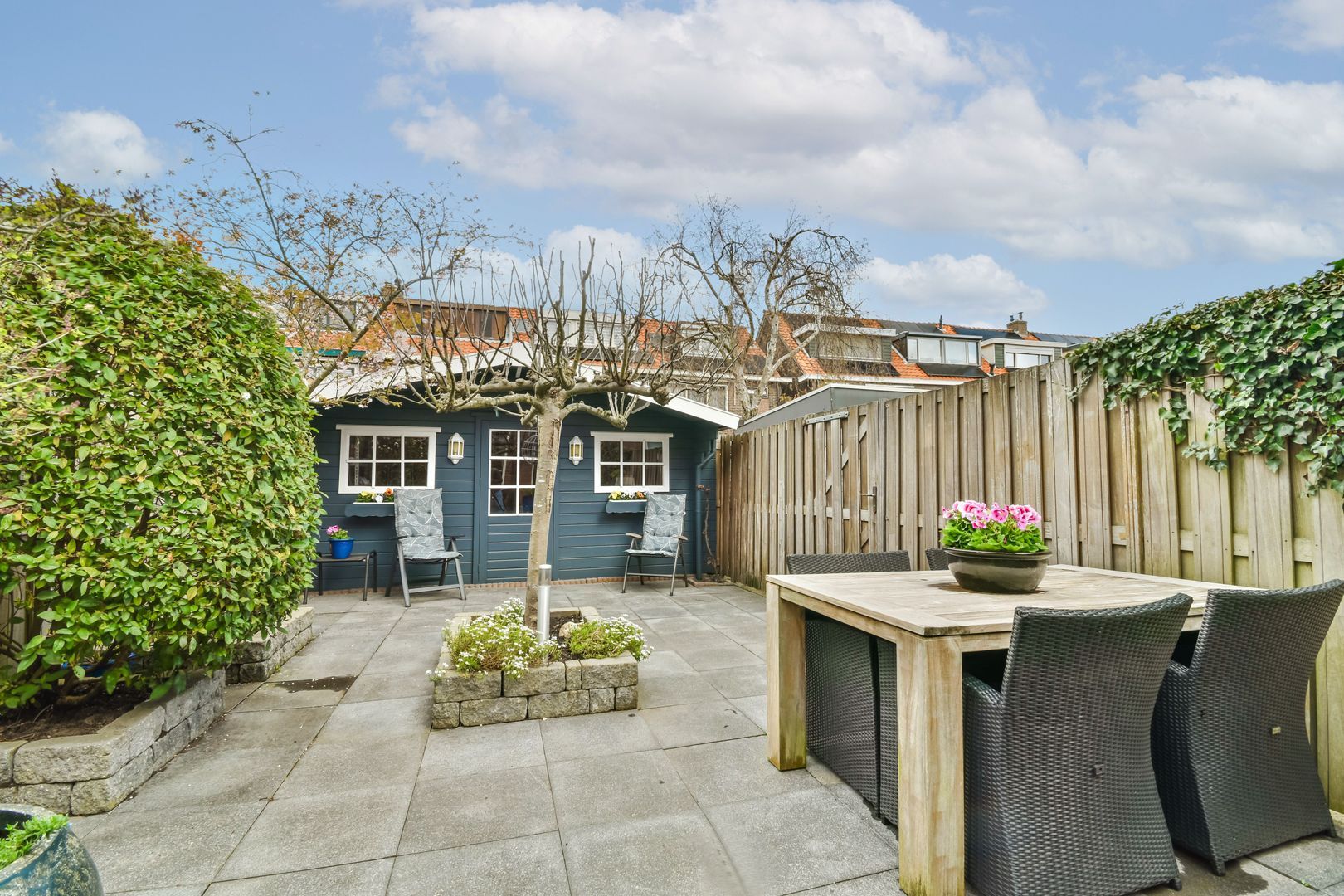 De woning beschikt over een verzorgde, recent aangelegde en zonnige achtertuin van ca. 14 meter diep en bijna 5 meter breed, gelegen op het noorden. Dankzij de diepte geniet je hier vrijwel de hele dag van de zon. De tuin is fraai aangelegd met meerdere terrassen, sierbestrating, groenborders en een achterom. In de tuin is tuiverlichting aanwezig (spots) en achterin de tuin bevindt zich een houten berging van ca. 7,5 m2, voorzien van elektra.