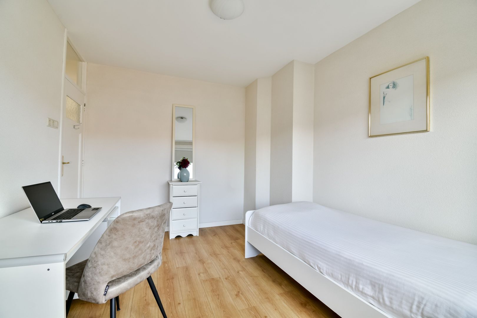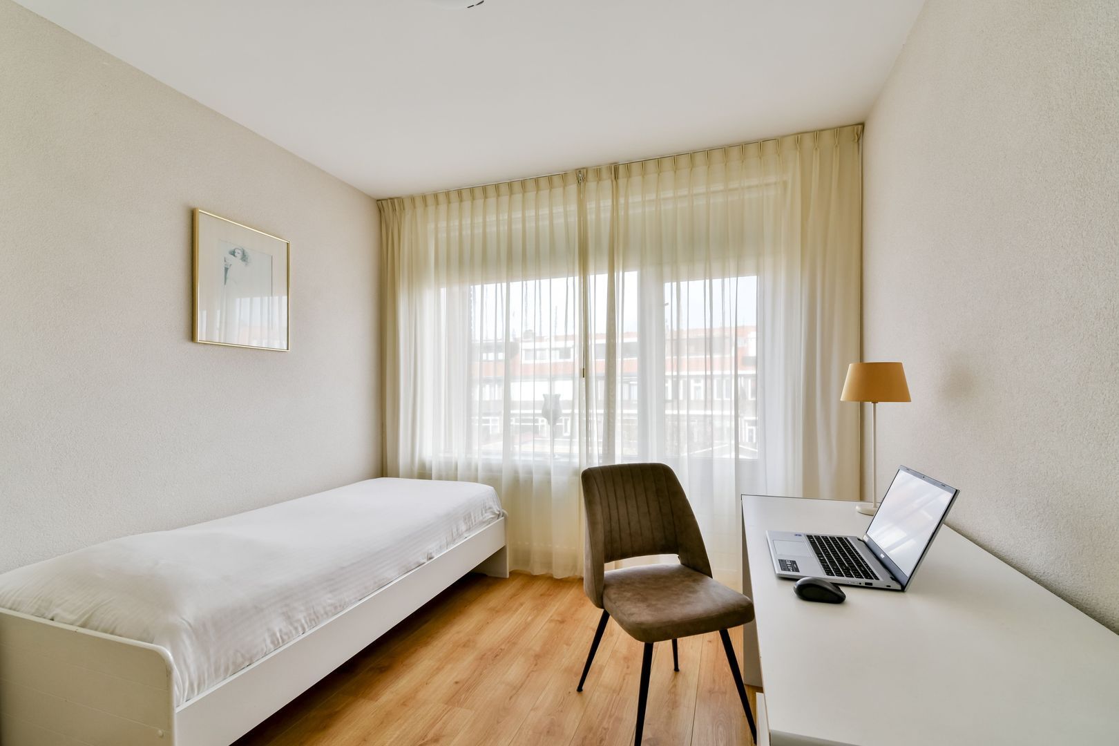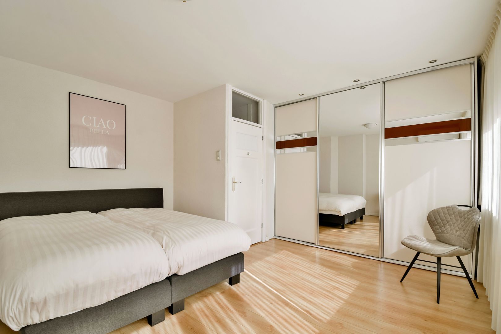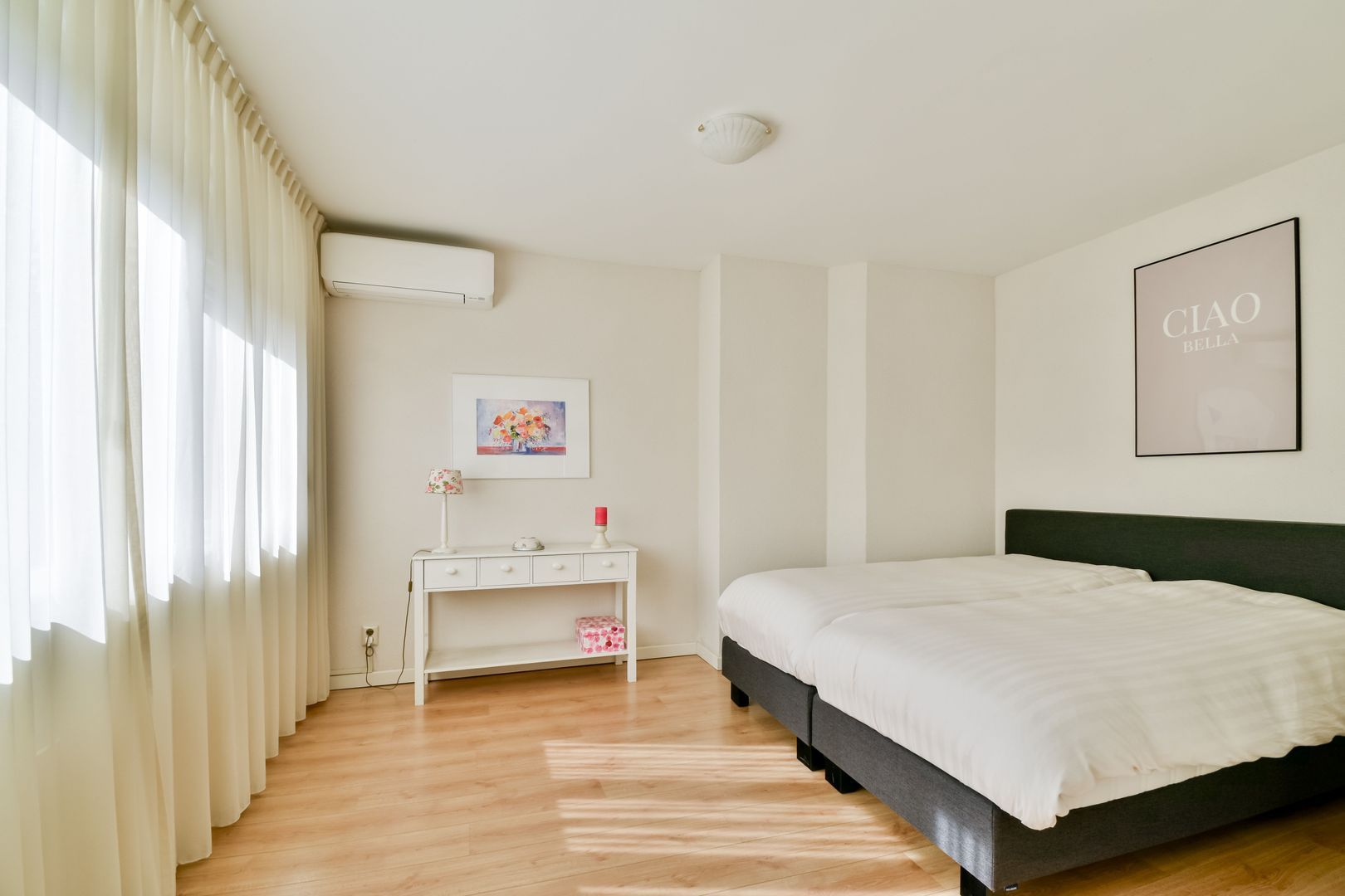 Slaapkamer aan de voorzijde van ca. 19 m2 (voorheen twee kamers), voorzien van een brede schuifkastenwand, laminaatvloer en een airco die kan koelen en verwarmen. Ook zijn er rolluiken aanwezig.