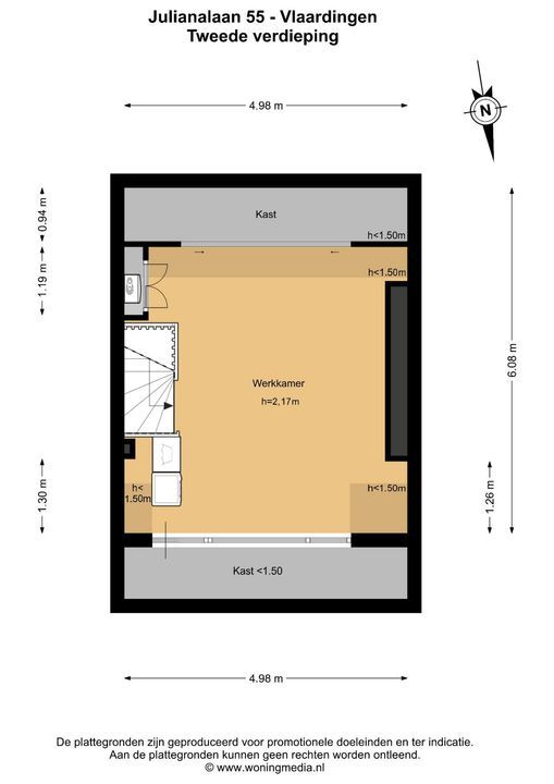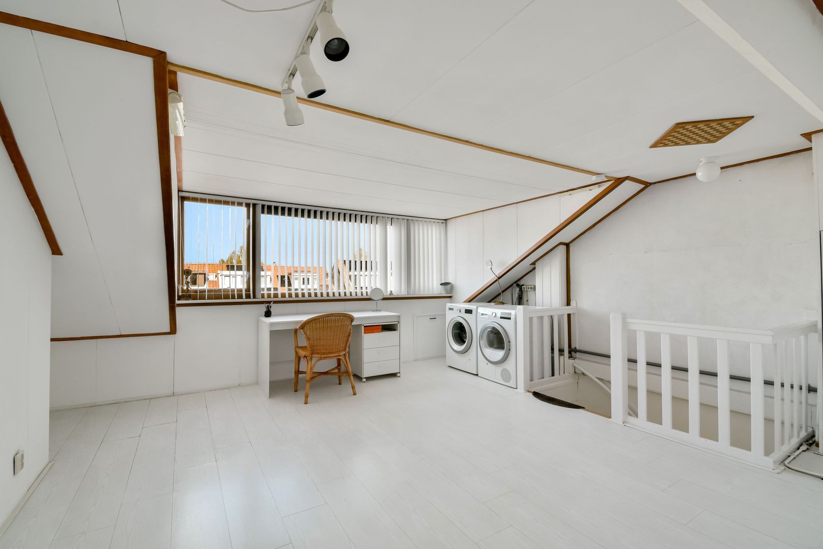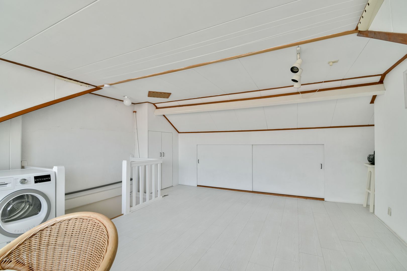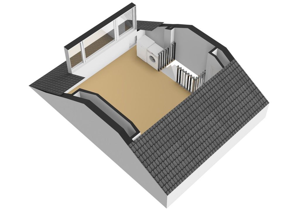 Ruime zolderkamer van ca. 25 m2 vloeroppervlakte, voorzien van een grote dakkapel wat zorgt voor veel lichtinval. Tevens bergruimte in de schuine kap, opstelling van de CV-ketel en aansluiting voor de wasmachine.