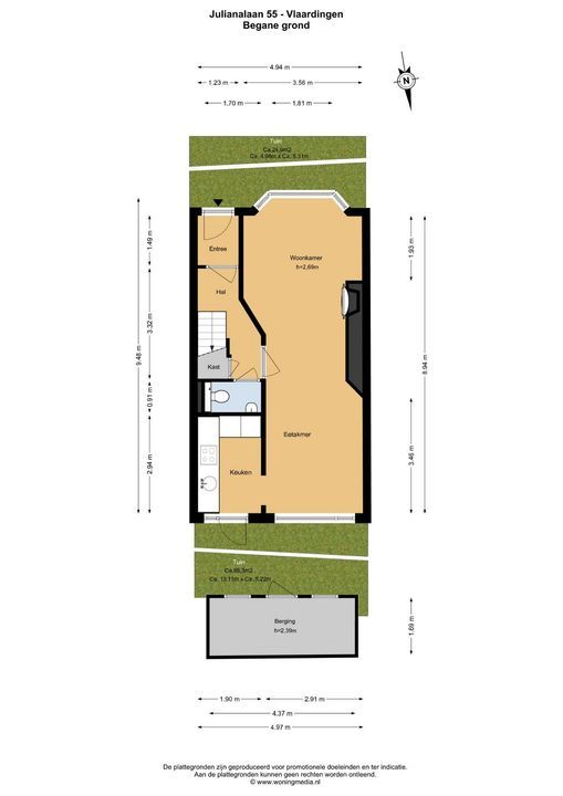 • Woonoppervlakte 104 m2, externe bergruimte ca. 8 m2, inhoud ca. 395 m3;