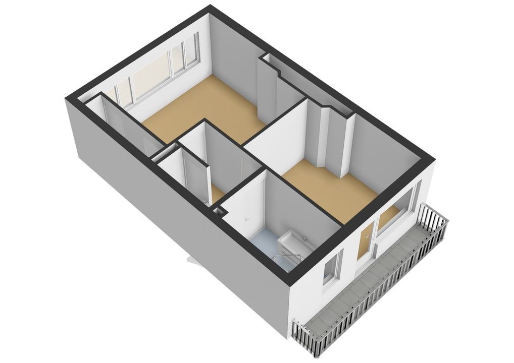 Slaapkamer aan de achterzijde van ca. 10 m2 met toegang tot het balkon (ca. 5 m2) over de gehele breedte van de woning.