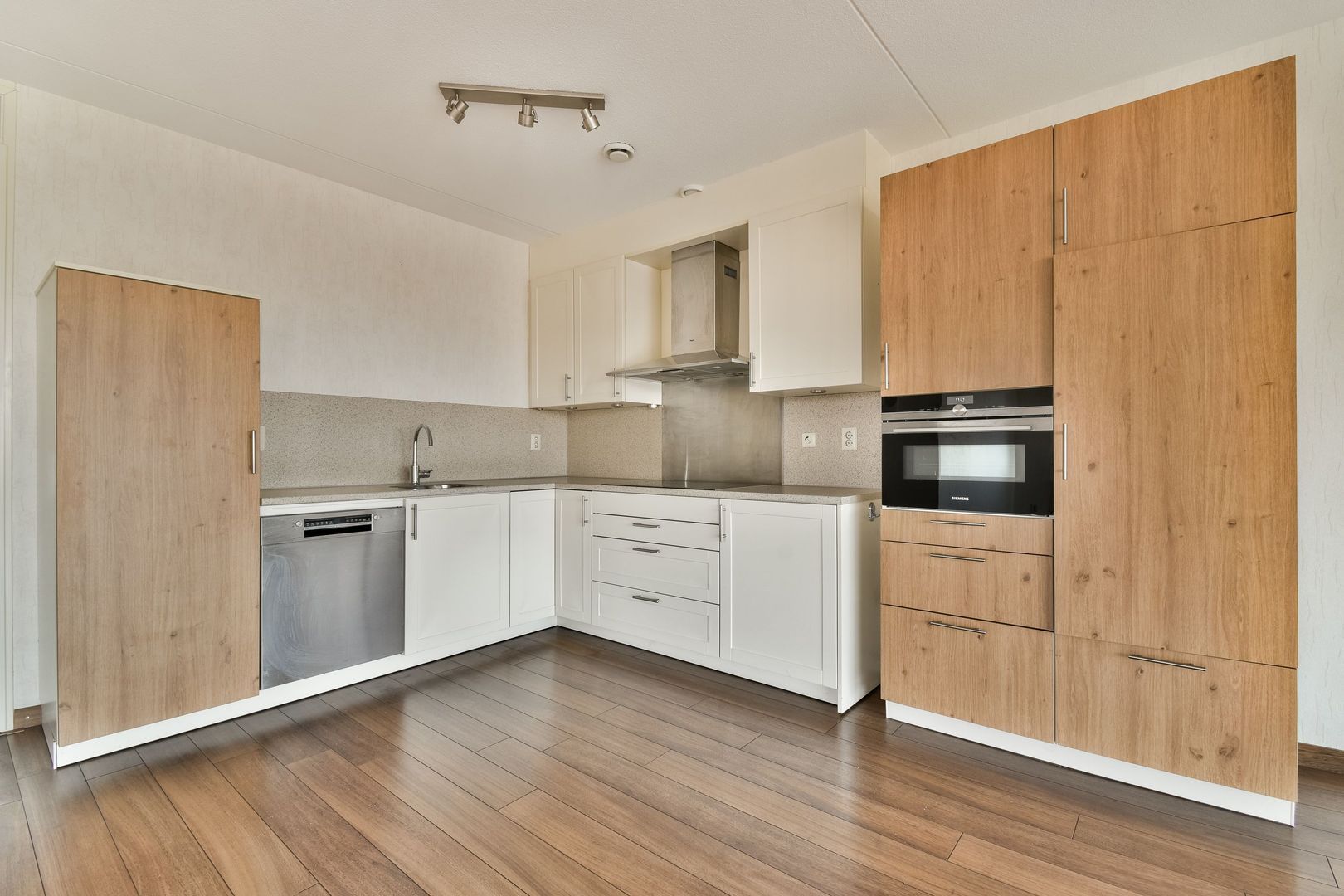 De keuken bestaan uit twee gedeelten, een oorspronkelijk gedeelte uit 2009 en een extra toegevoegd gedeelte uit 2018. De keuken is voorzien van een inductiekookplaat (2018), afzuigkap, vaatwasser (2023), Koelkast (2018), grote vriezer (5 laden 2018) en combi magnetron (2018).