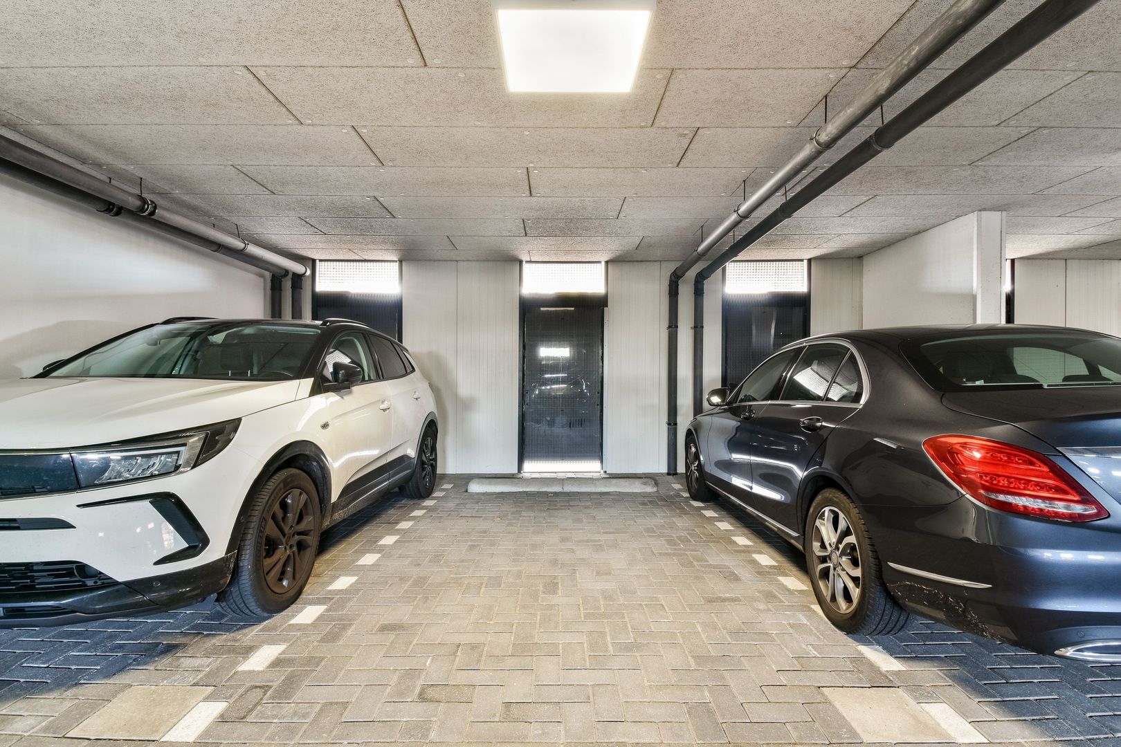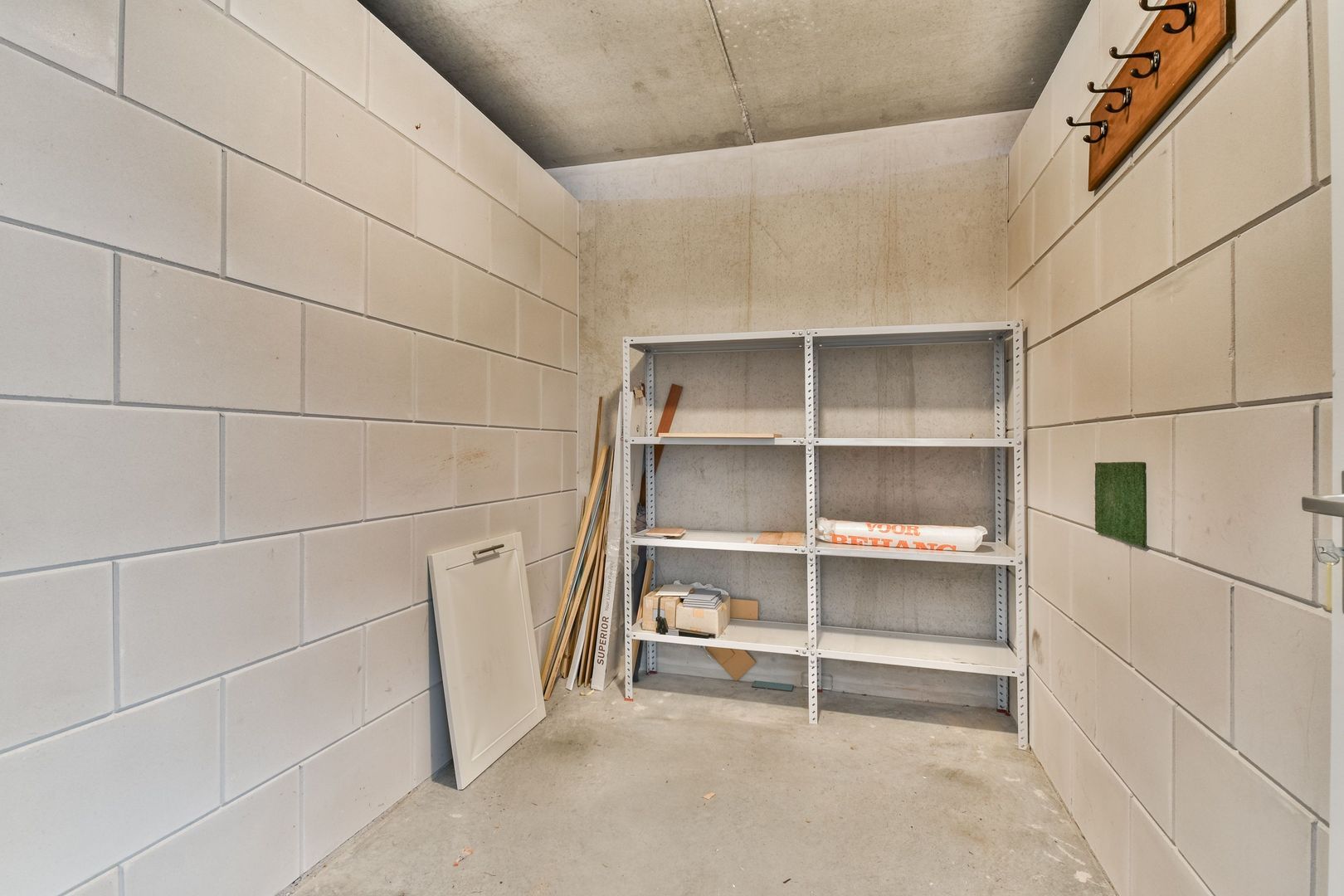 Op de begane grond ligt de eigen parkeerplaats in de garage met elektrische toegangsdeur. In de kelder zit de berging van ca. 6 m2 met elektra.