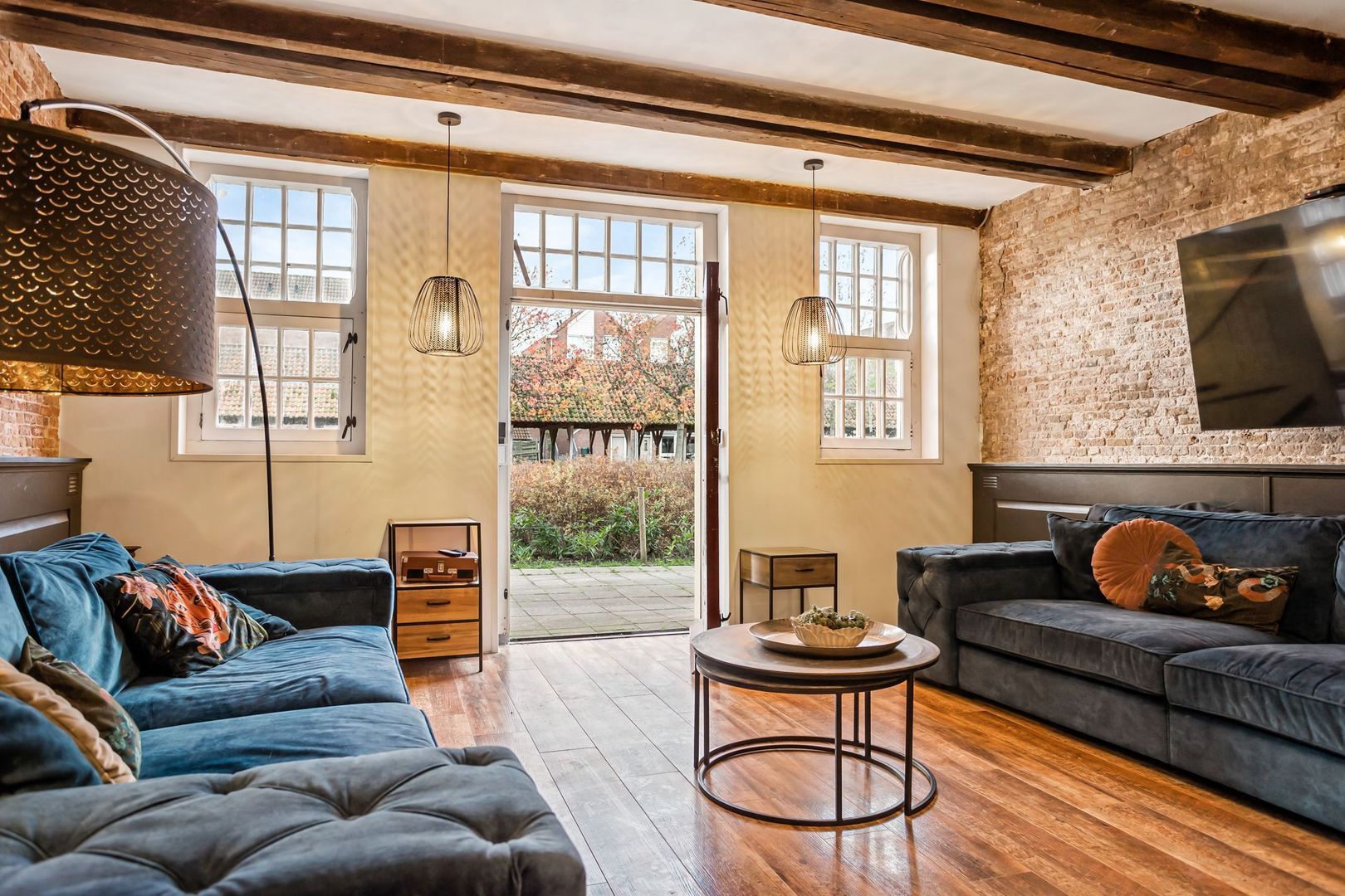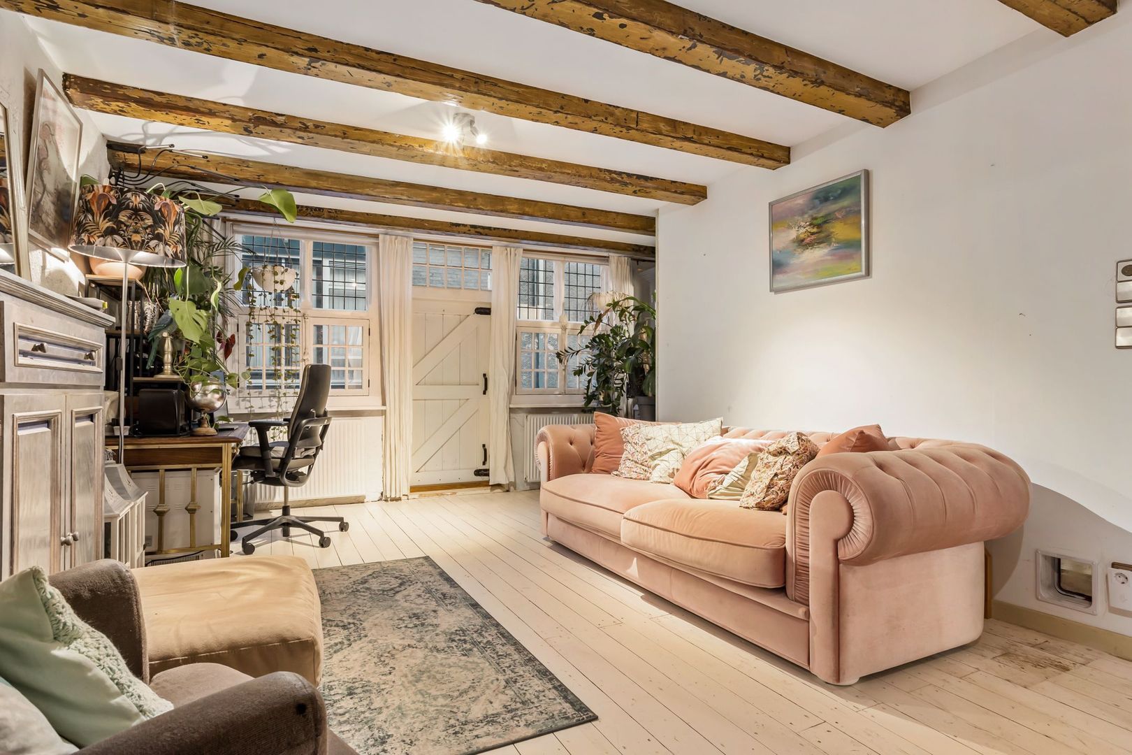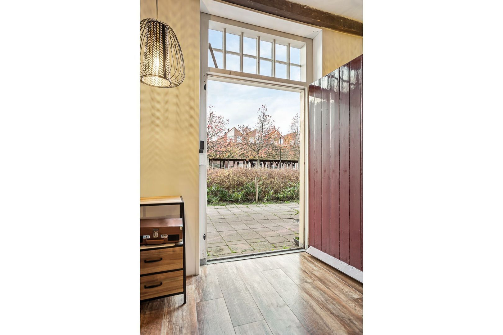 De achterdeur in de woonkamer biedt tevens toegang tot de straat/park achter het huis.