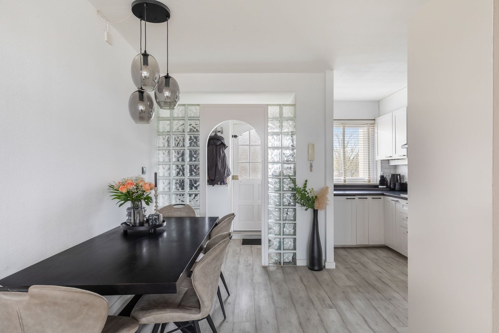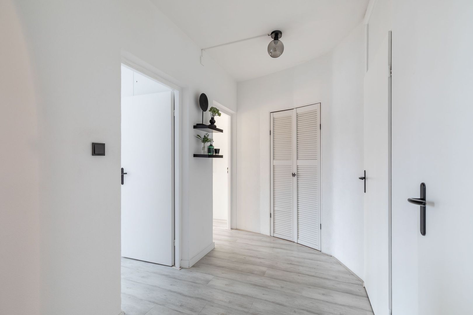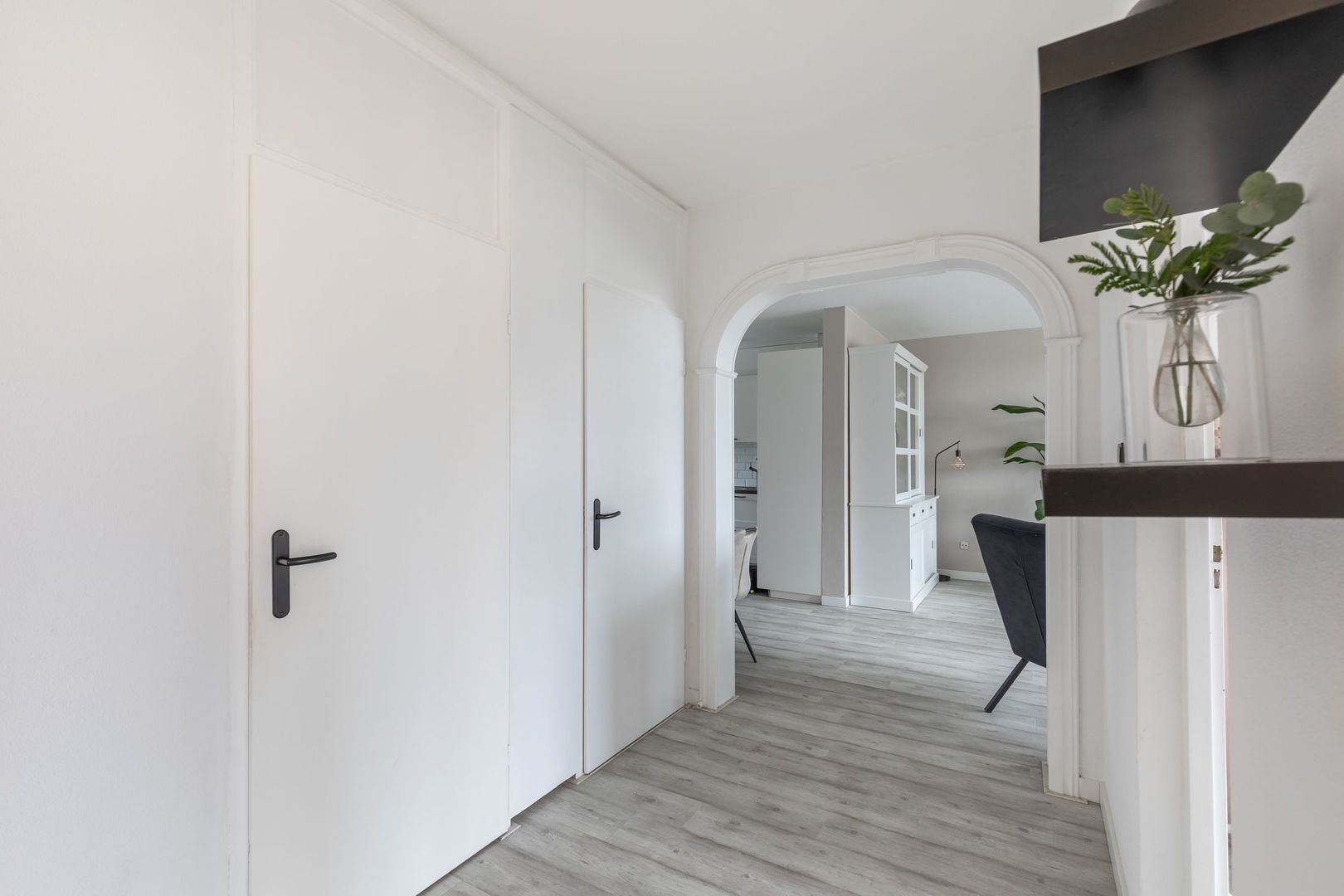 Entree woning met ruime hal met meterkast, garderobe en in 2017 vernieuwd, geheel betegelde toiletruimte met zwevend toilet, fonteintje met meubel en verlaagd plafond met inbouwspots.