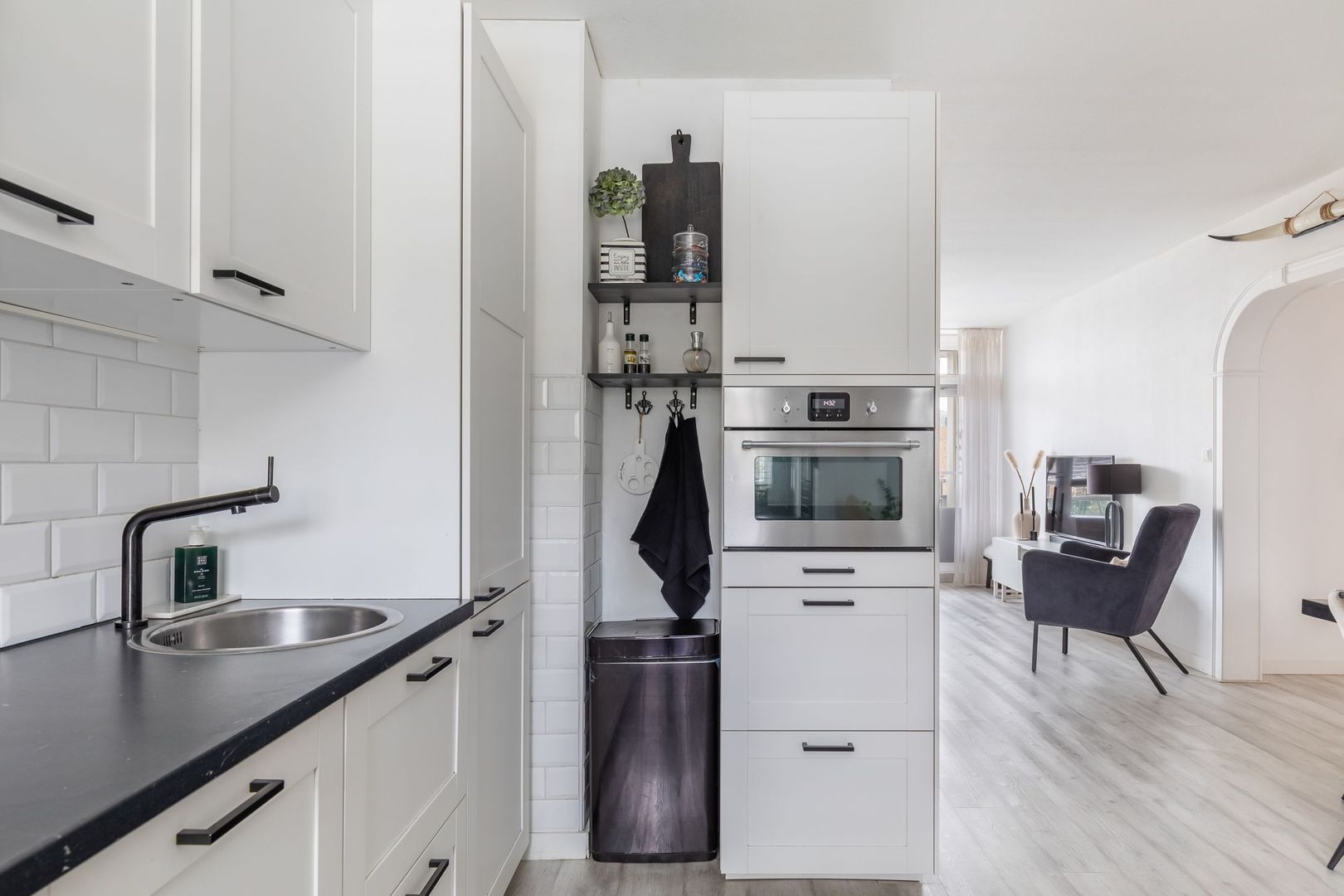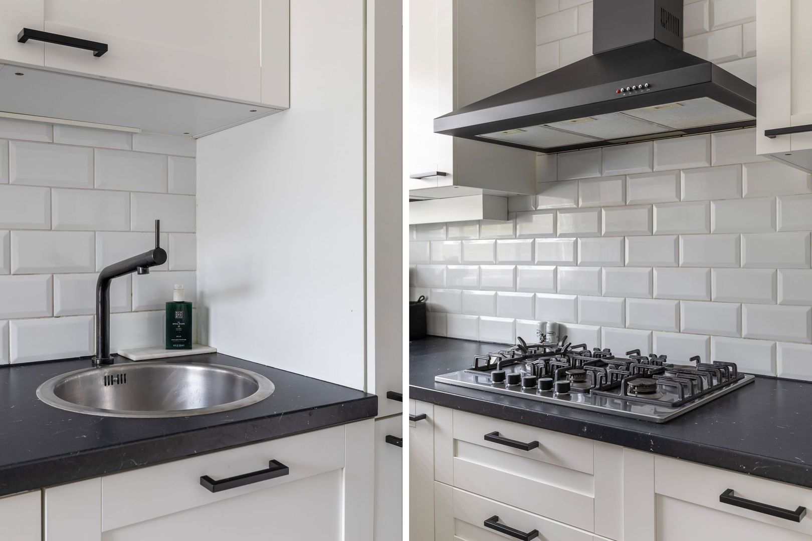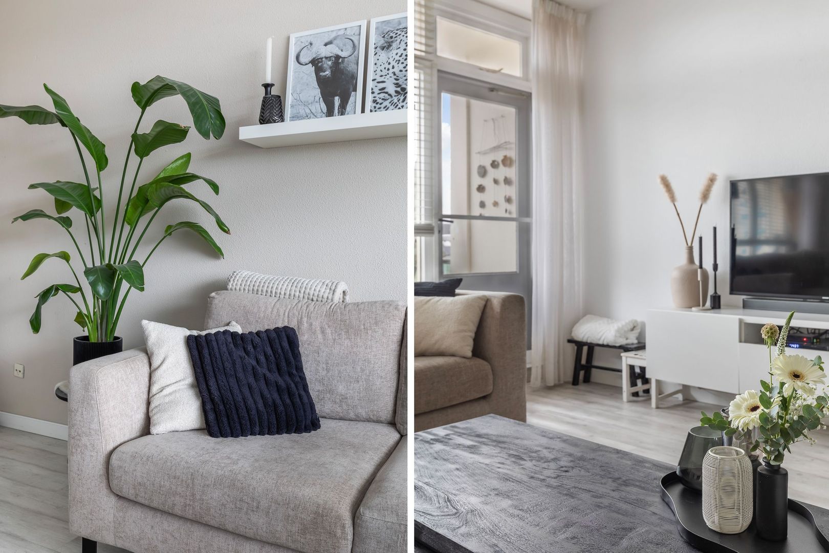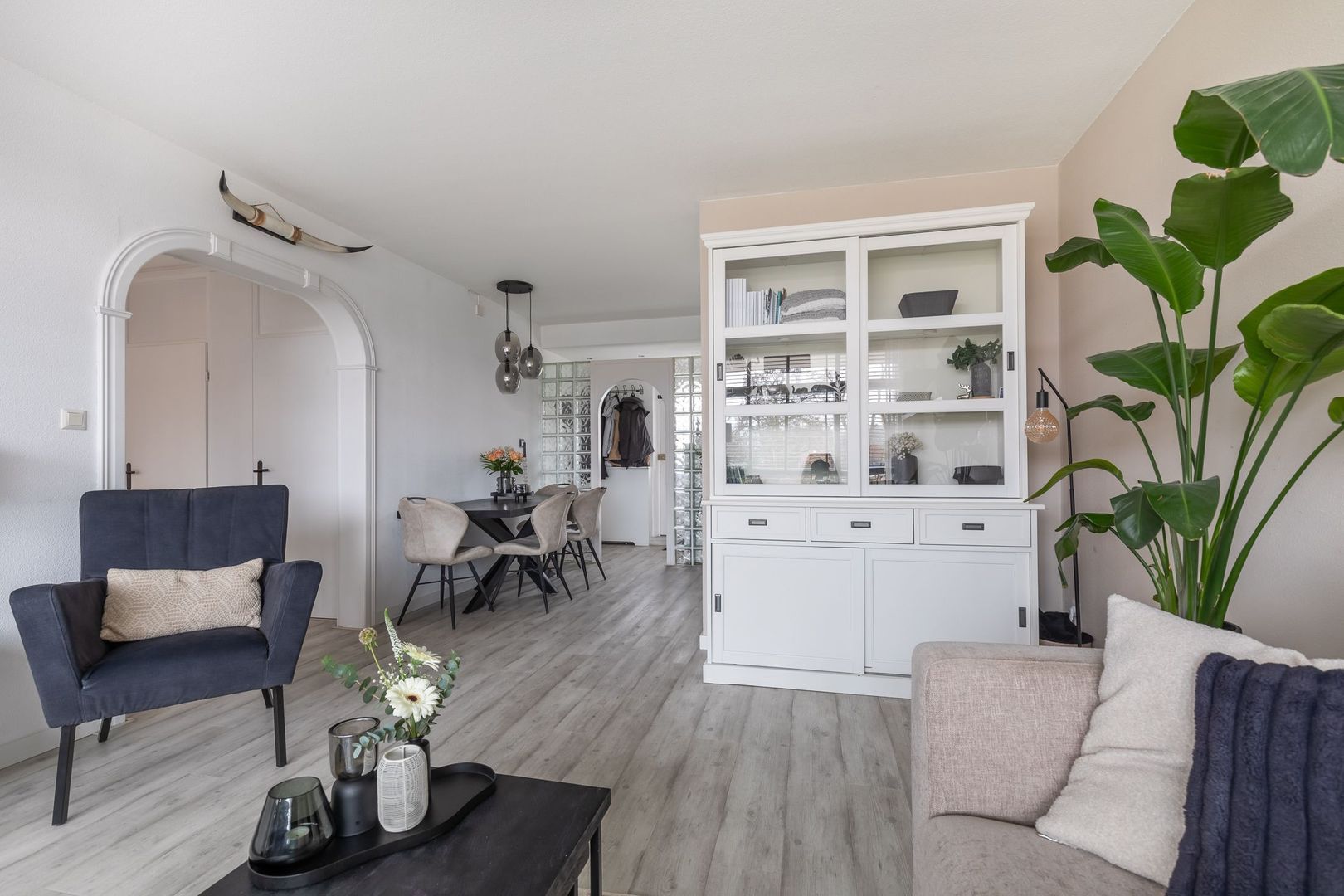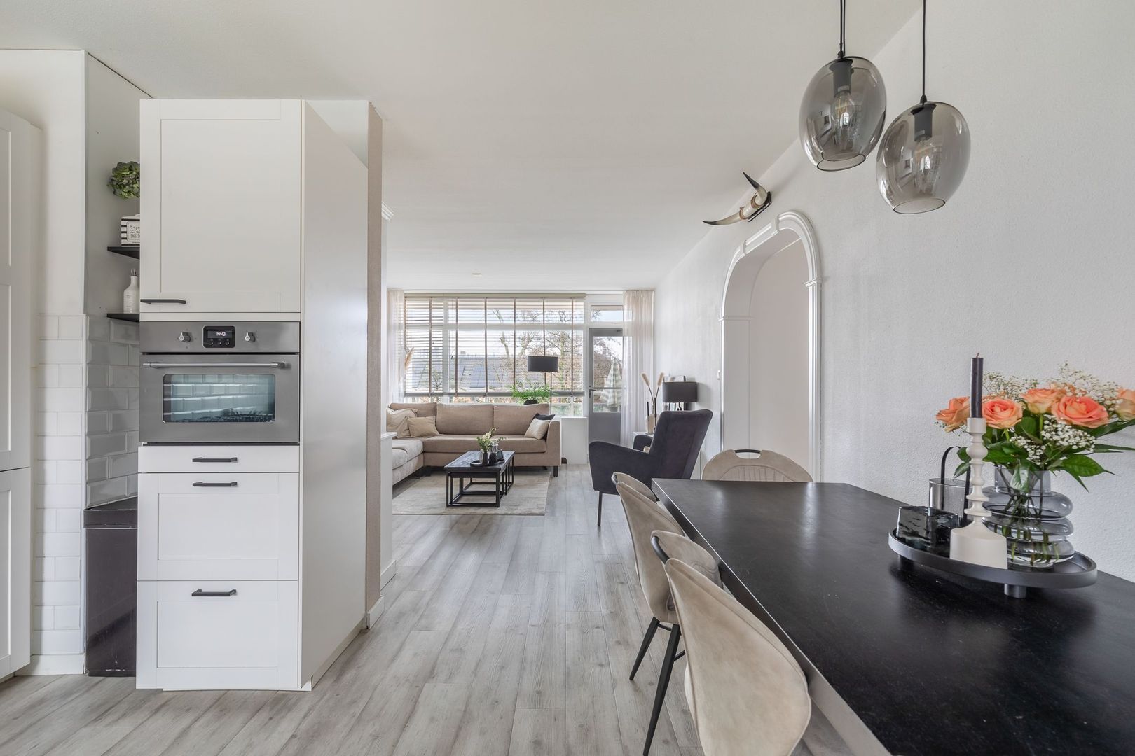 Ruime en heerlijk lichte woonkamer van 36 m2 met spuitwerk plafond en wandafwerking en moderne white-wash eiken laminaatvloer, doorlopend naar de halfopen Ikea keuken (2017), die is uitgevoerd met veel kastruimte en beschikt over de volgende inbouwapparatuur: koelkast, 3-laden vriezer, vaatwasser, combi-oven, 5-pits gaskookplaat, afzuigkap, carrouselkast en opstelling 80 liter elektrische boiler en aansluiting wasmachine.
