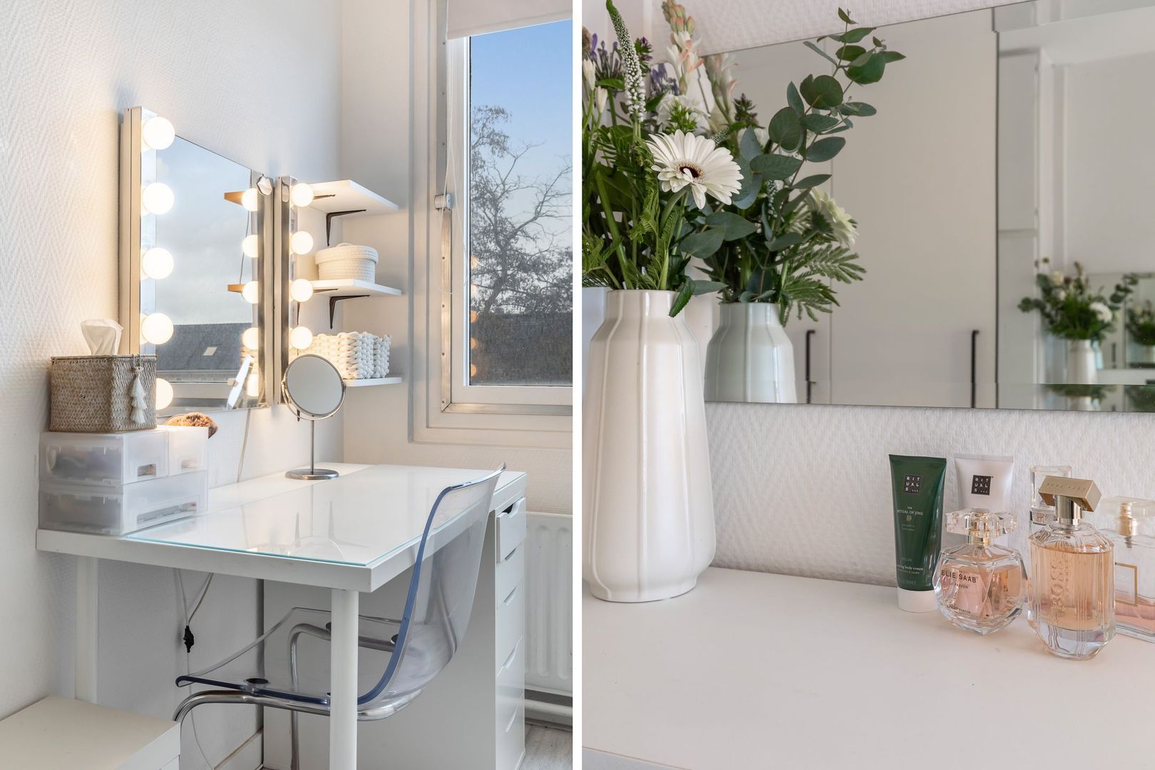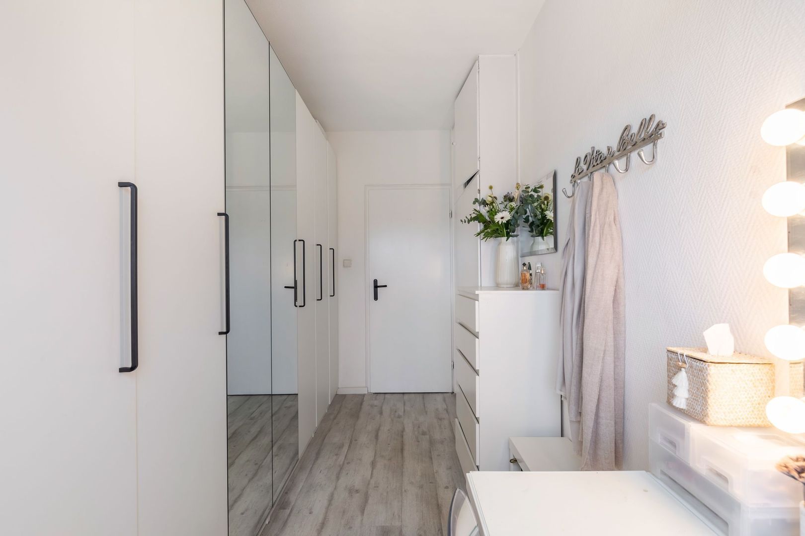 Via de ruime hal met diepe ingebouwde kasten met aansluiting voor de droger zijn de slaapkamers te bereiken, die alle voorzien zijn van een moderne laminaatvloer.