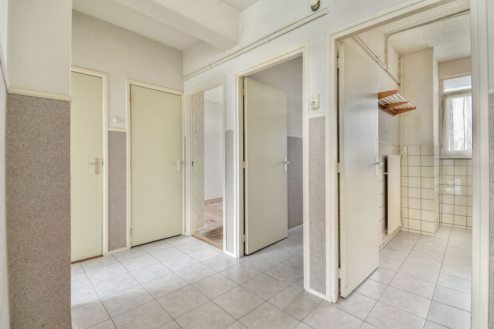 Entree woning met hal, meterkast en videofoon. 2e hal met toegang tot alle vertrekken van de woning en vaste kast. Gedeeltelijk betegeld toilet met fontein. Woonkamer met zicht op het Liesveld van ca. 24 m2 met een vaste kast. Eventueel is de woonkamer nog te vergroten met de naastgelegen slaapkamer. Aan galerijzijde ligt de keuken met een eenvoudige keukeninrichting. Er zijn drie slaapkamers. Slaapkamer 1 aan voorzijde van bijna 11 m2 heeft dubbele vaste kaste en toegang tot het balkon van bijna 4 m2. Slaapkamer 2 en 3 liggen beide aan galerijzijde en hebben ook allebei een vaste kast. Deze slaapkamers zijn allebei ca. 9,5 m2 groot. De badkamer/doucheruimte is gedeeltelijk betegeld en voorzien van