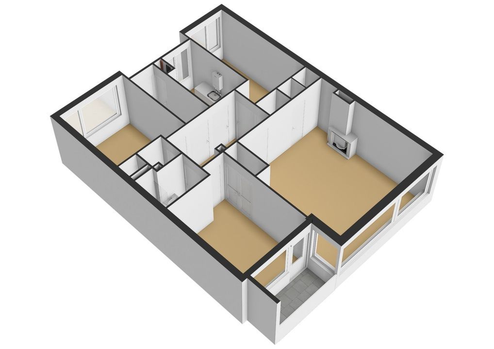 - De woning is aan galerijzijde nog voorzien van houten kozijnen met enkel glas;