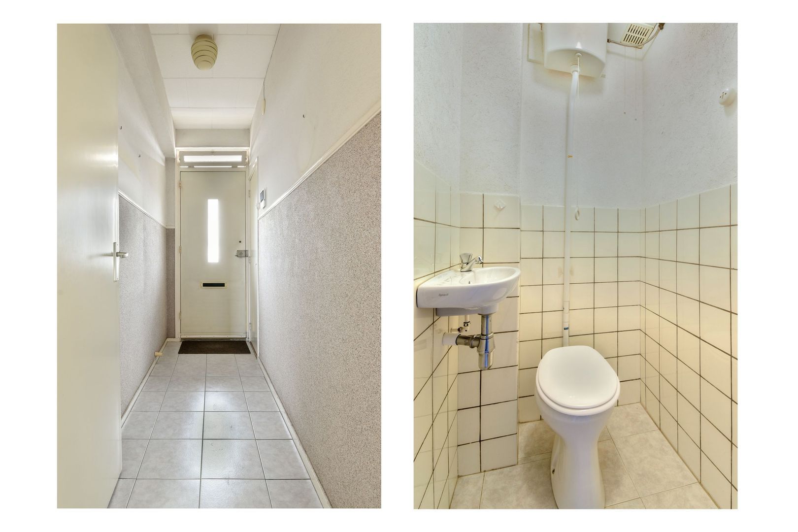 Afgesloten entree met brievenbussen en bellentableau. Hal met toegang tot trappenhuis, lift en bergingen in de kelder. Naast de entree ligt een gemeenschappelijke fietsenstalling.