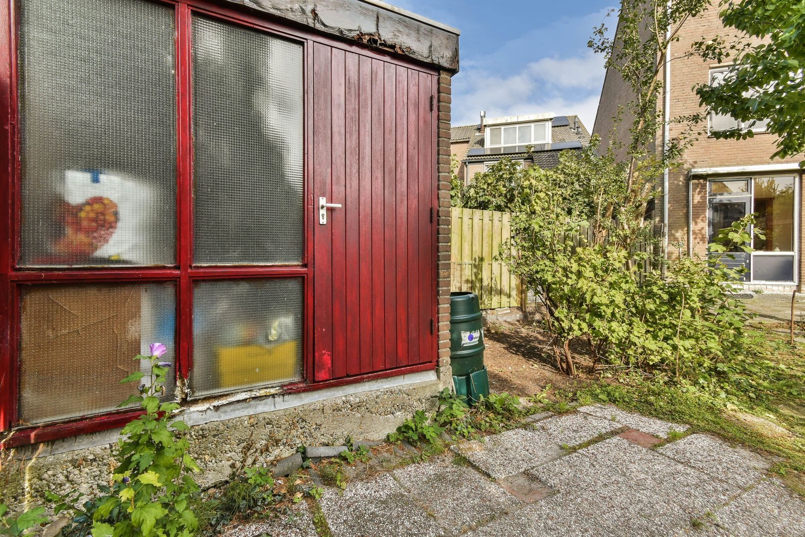 Mooi aangelegde achtertuin met zuid/oosten ligging van 15 meter diep, uitwaaierende en met een gemiddelde breedte van ca. 9 meter. De tuin is voorzien van veel groen en is verzakt. Aan het einde van de tuin staat een onderheide stenen berging van ca. 6 m2 met betonvloer. De tuin is ook bereikbaar via een gemeenschappelijke achterom. De voortuin is ook groen en ca. 4 m diep.