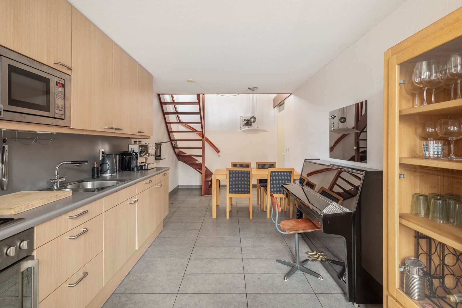 Via de hardhouten trap bereikt u de benedenverdieping waar zich de eetkeuken bevindt. De keuken is voorzien van plavuizen vloertegels met vloerverwarming, eethoek en de navolgende inbouwapparatuur: vaatwasser, 4-pits gaskookplaat, oven, magnetron, afzuigkap, koel-vriescombi, dubbele gootsteen en close-in boiler.