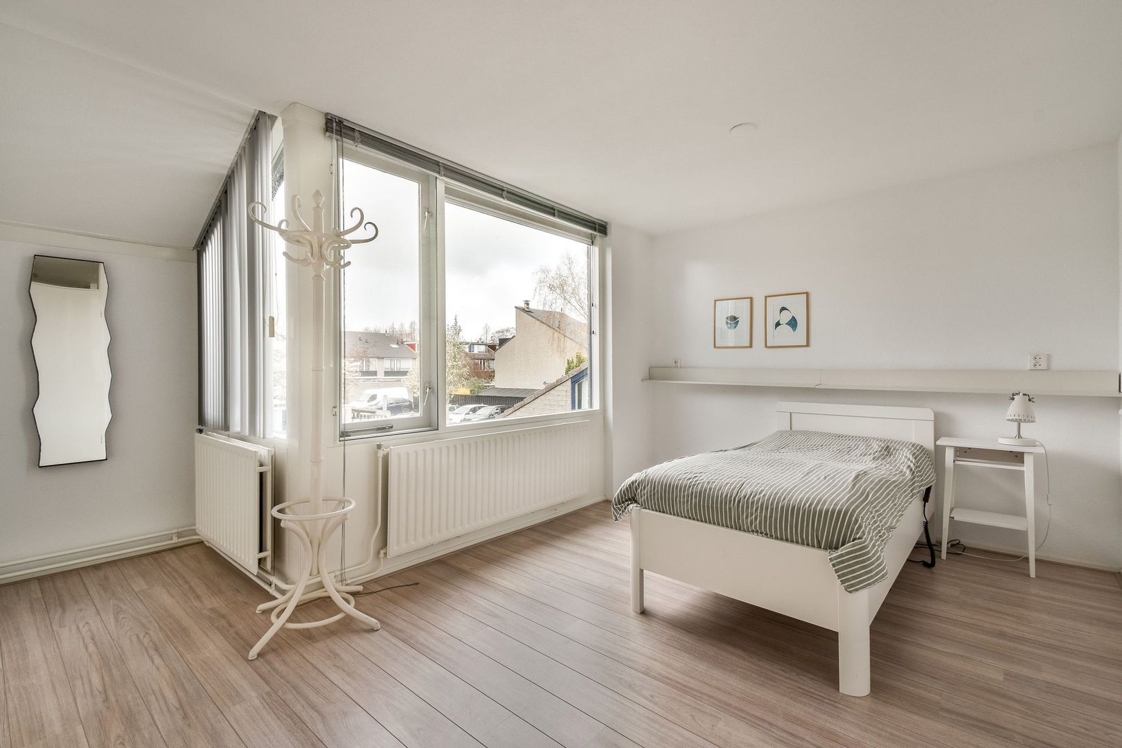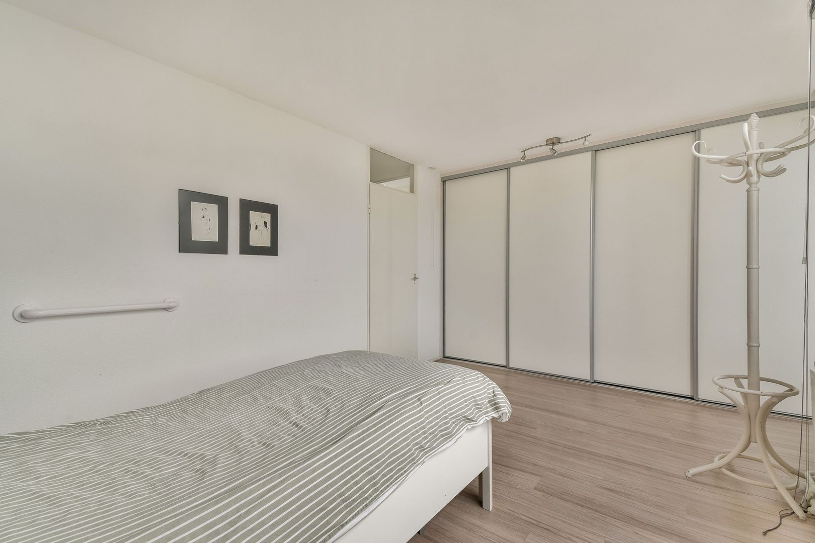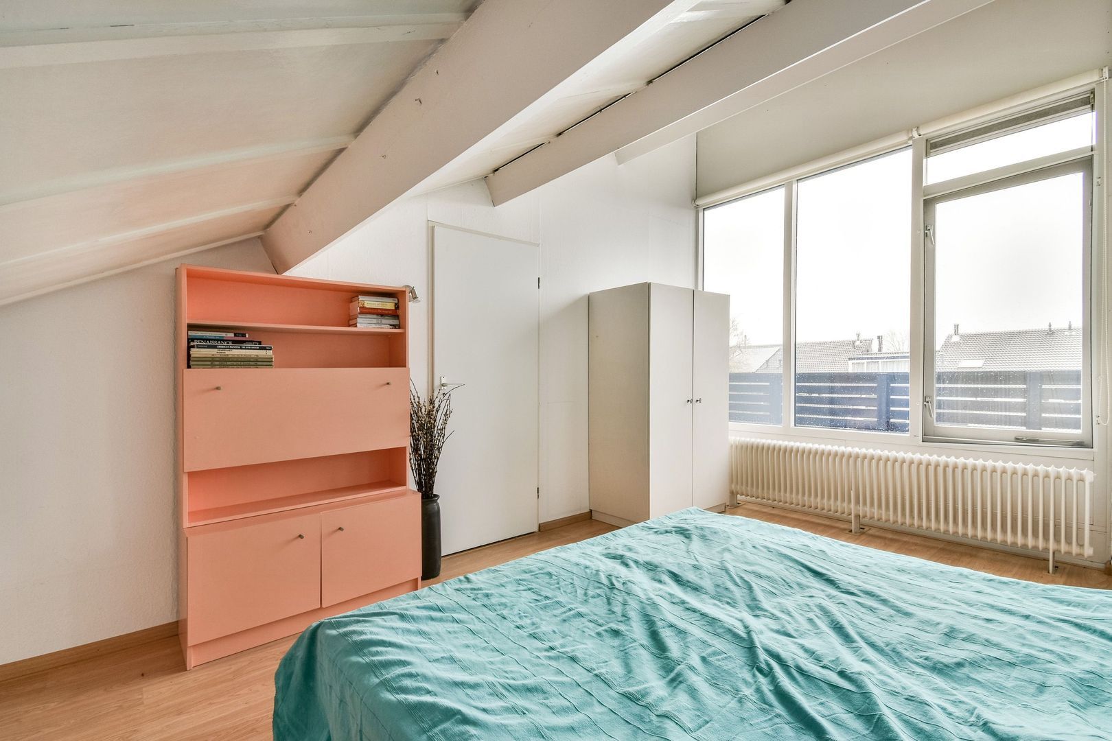 Aan de voorzijde ligt de ruime hoofdslaapkamer van ca. 18,6 m² met extra zijruimte, ideaal als werk- of studiehoek, en voorzien van een kastenwand.