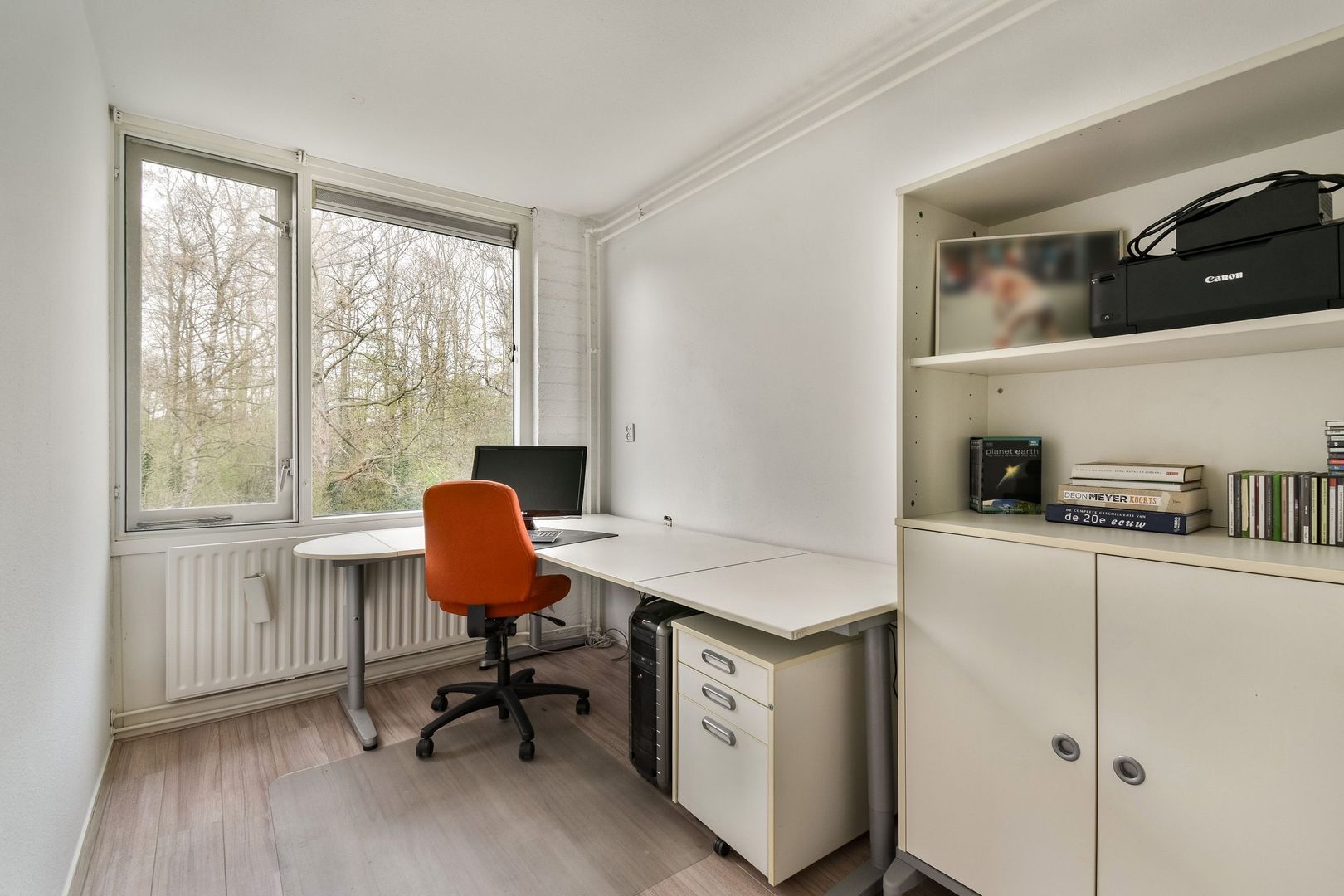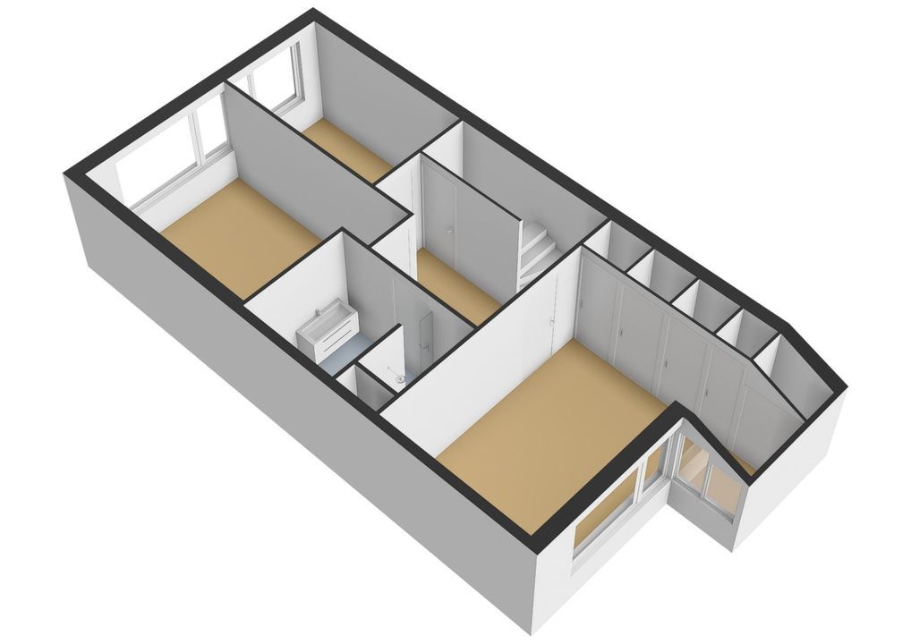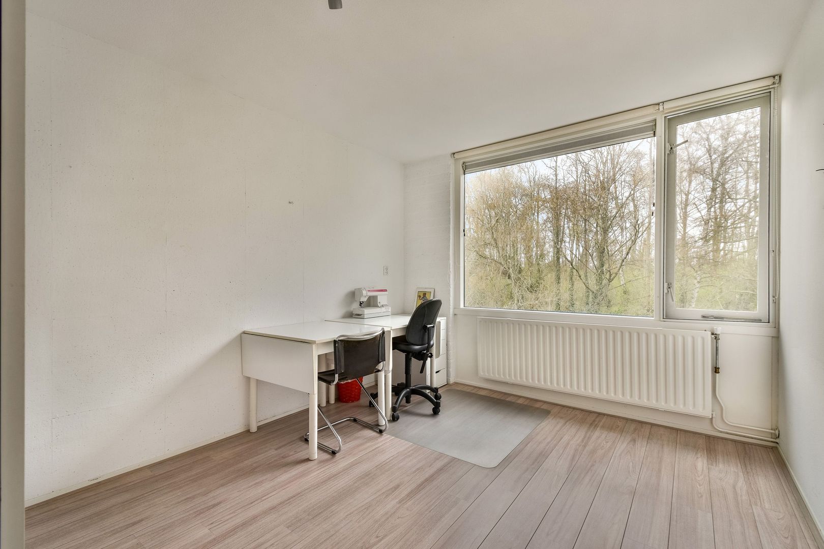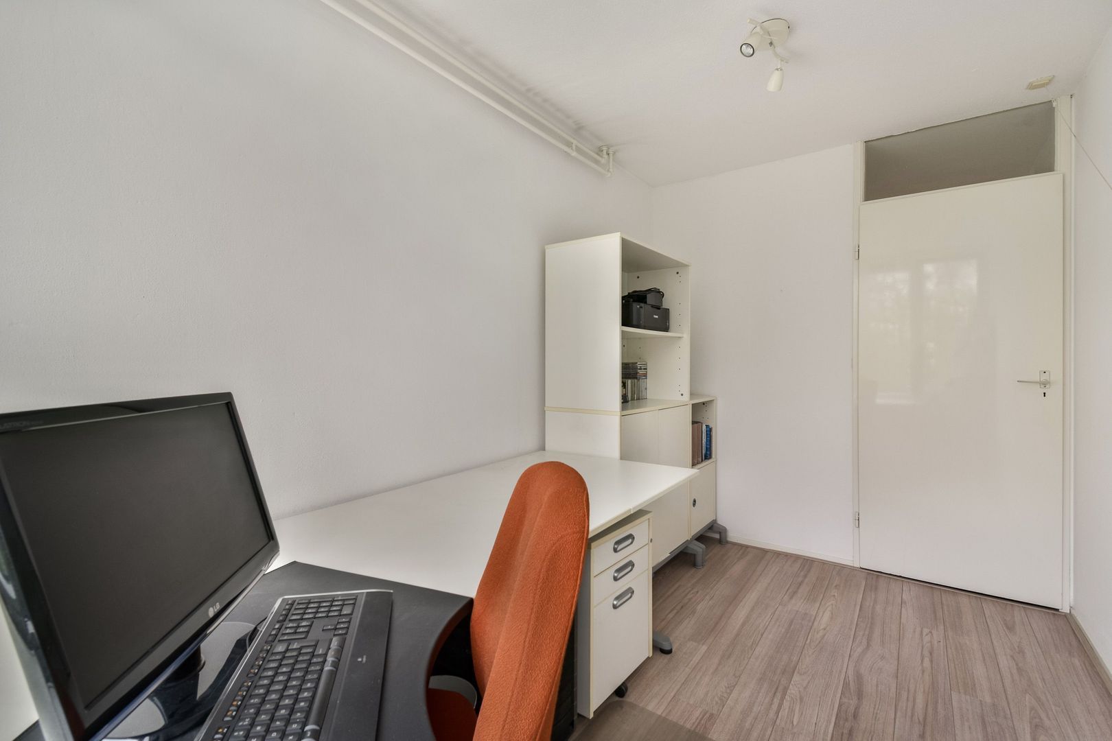 Aan de voorzijde ligt de ruime hoofdslaapkamer van ca. 18,6 m² met extra zijruimte, ideaal als werk- of studiehoek, en voorzien van een kastenwand.