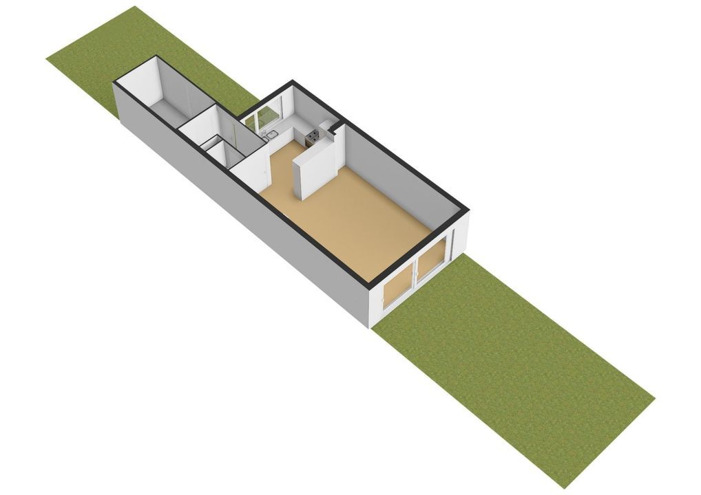 De voortuin (ca. 11 x 5,5 meter) beschikt naast de aangebouwde stenen berging over een buitenkraan, elektra en een eigen oprit/parkeerplaats.