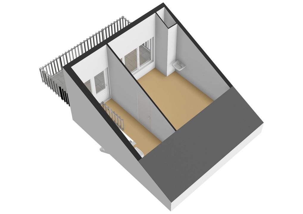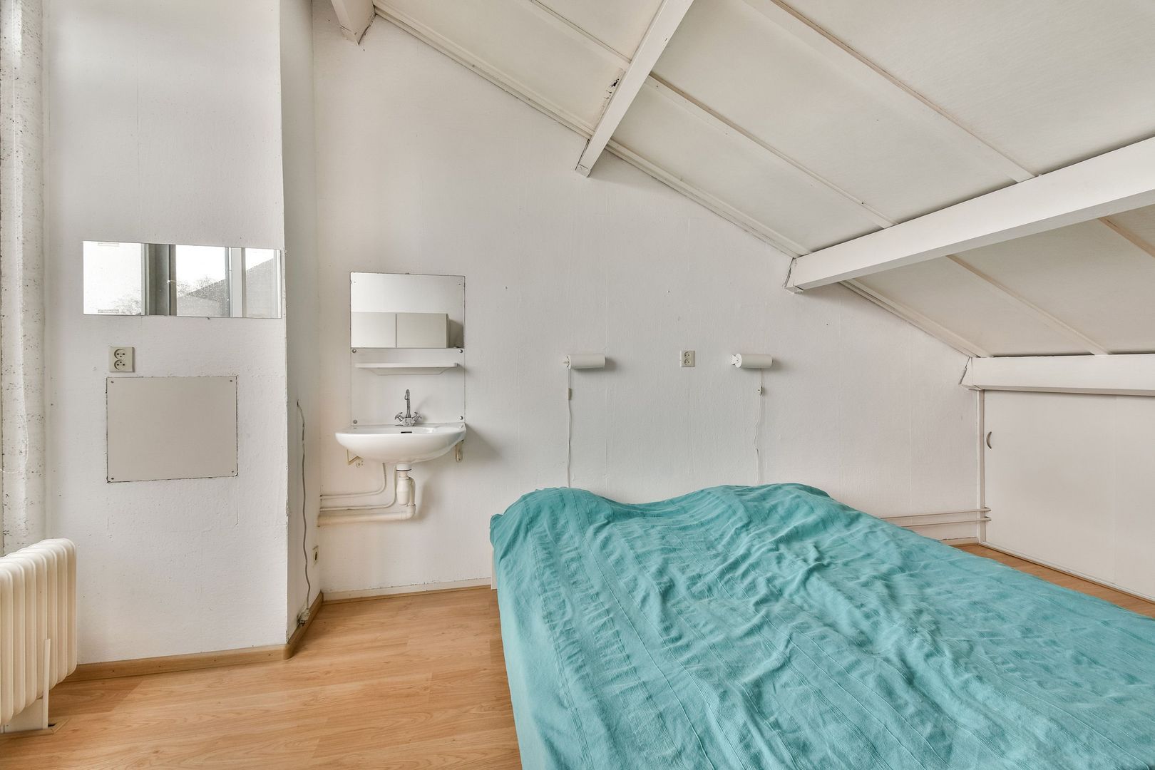 Royale zolderverdieping met een ruime slaapkamer van ca. 14 m², voorzien van wastafel en laminaatvloer.