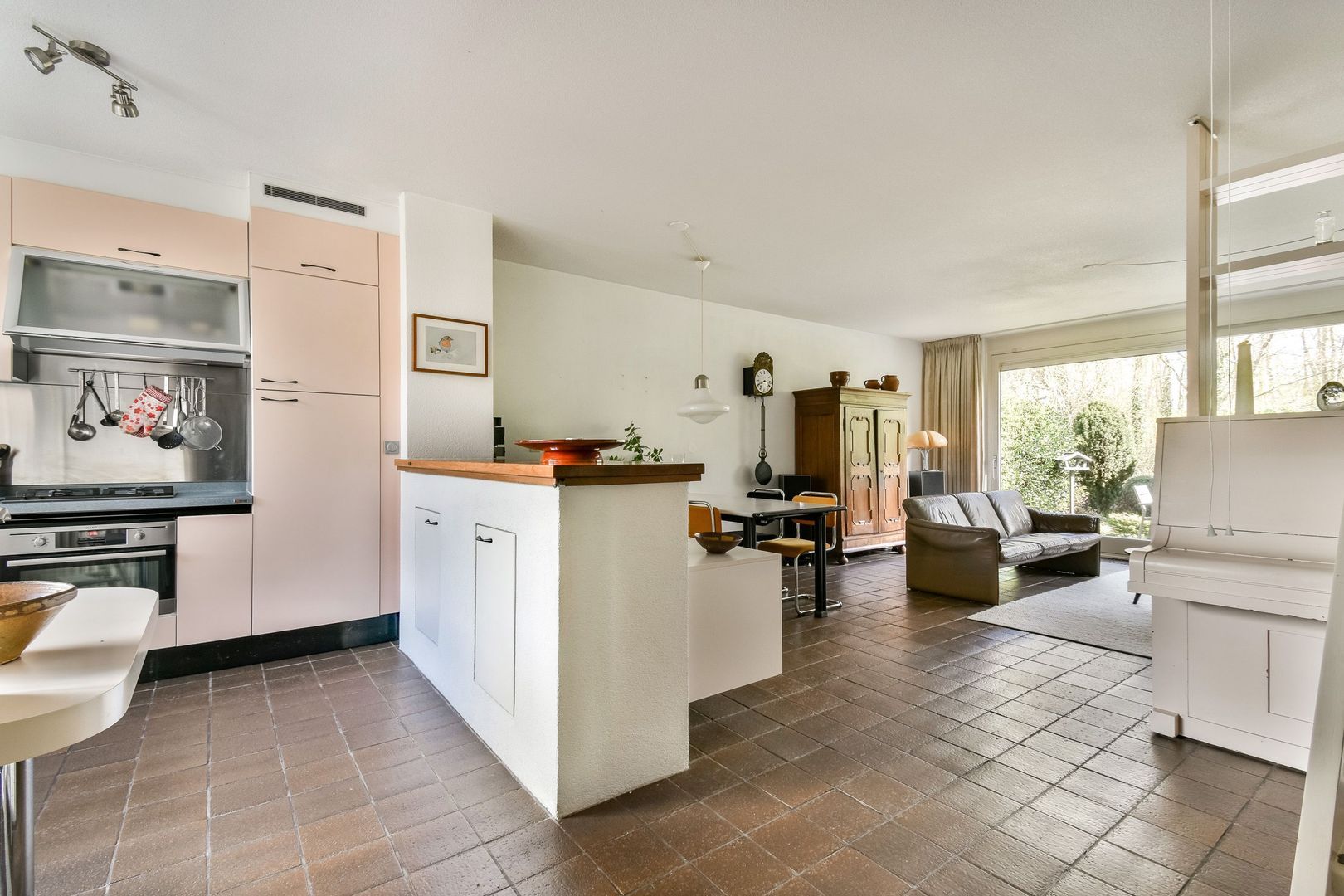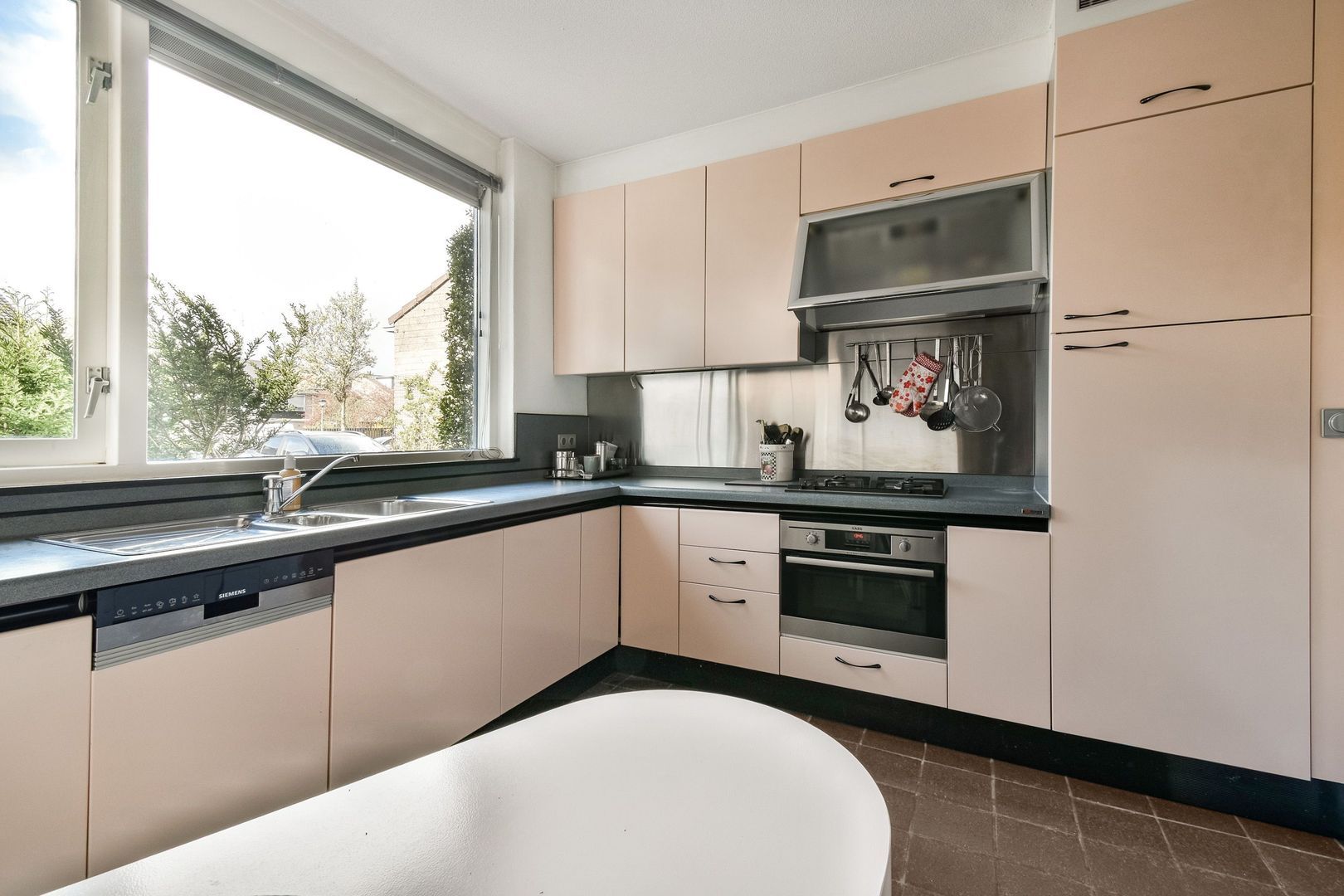 De open Italiaanse design hoekkeuken is voorzien van veel werkruimte, betegelde achterwand, kastruimte en diverse inbouwapparatuur, waaronder een vaatwasser, gaskookplaat, heteluchtoven en verlichting. Het grote raam aan de keukenzijde zorgt voor prettig lichtinval en een mooi uitzicht.