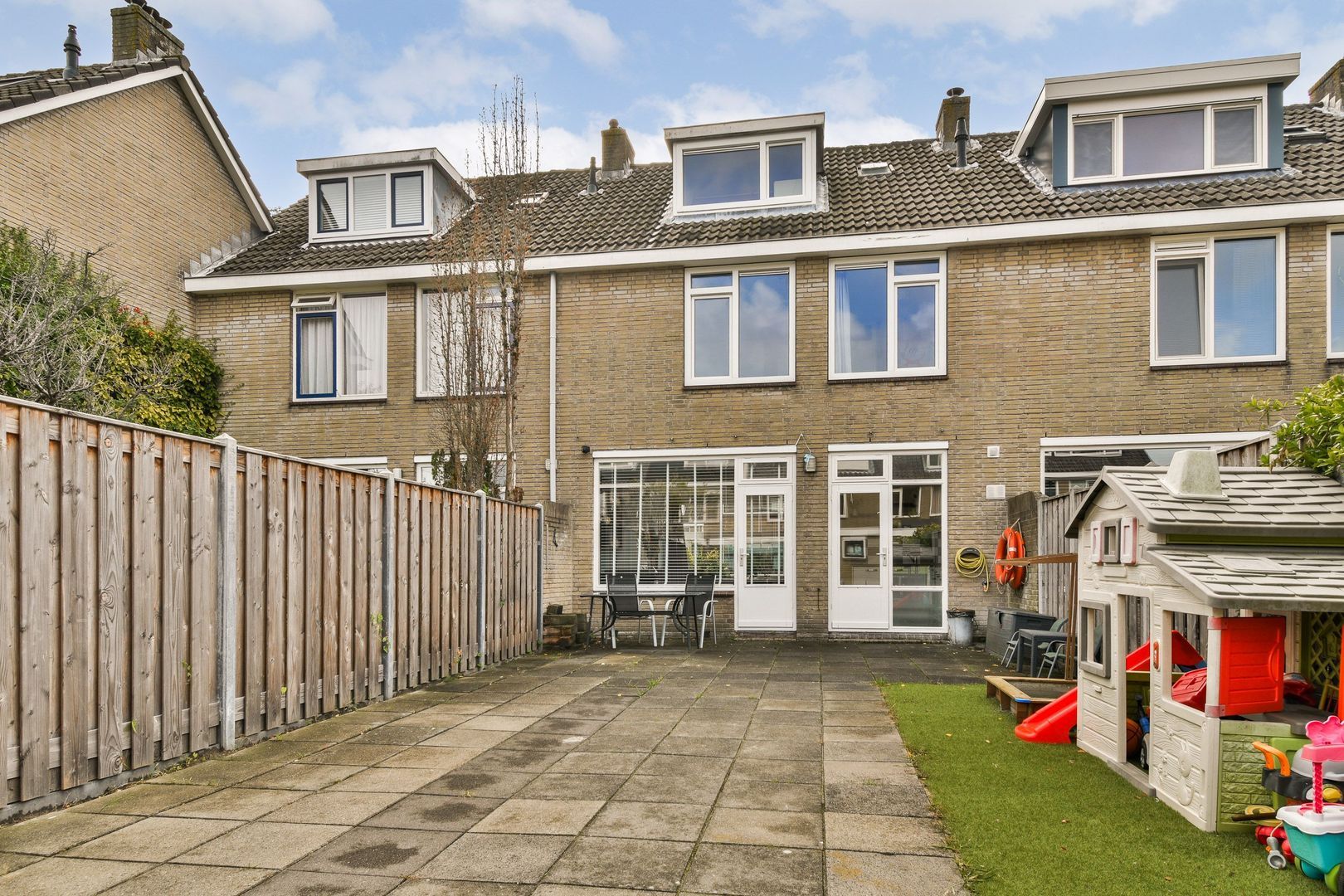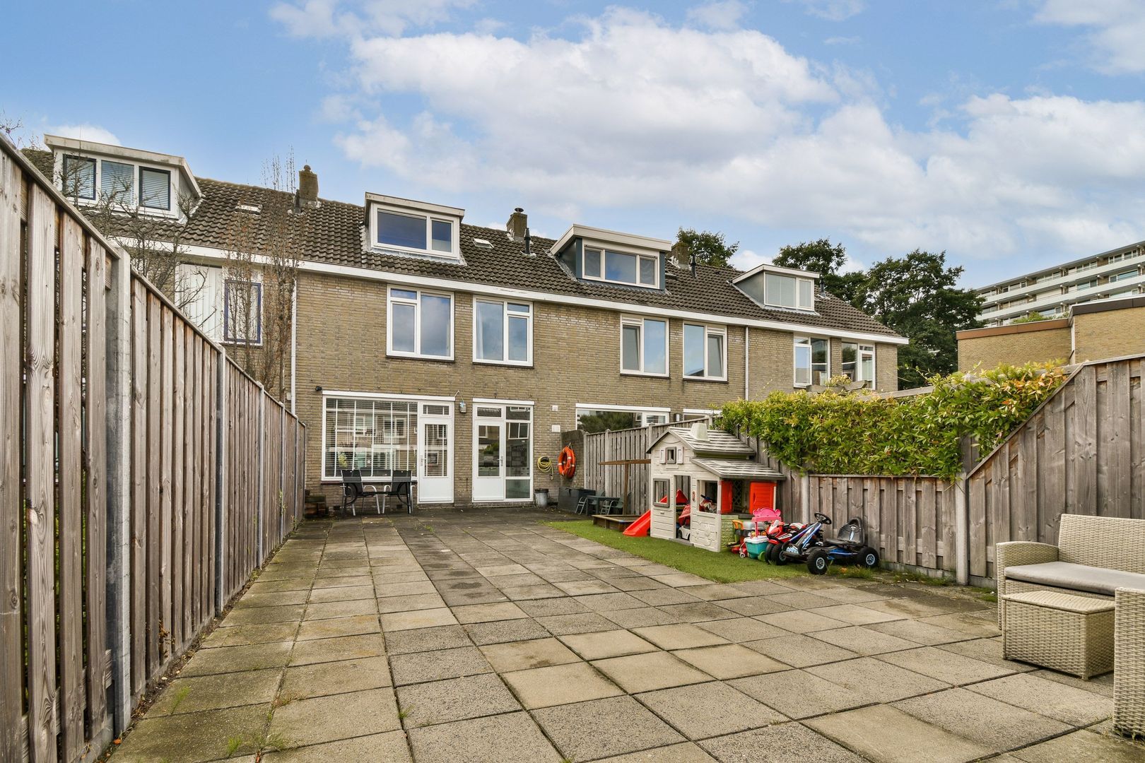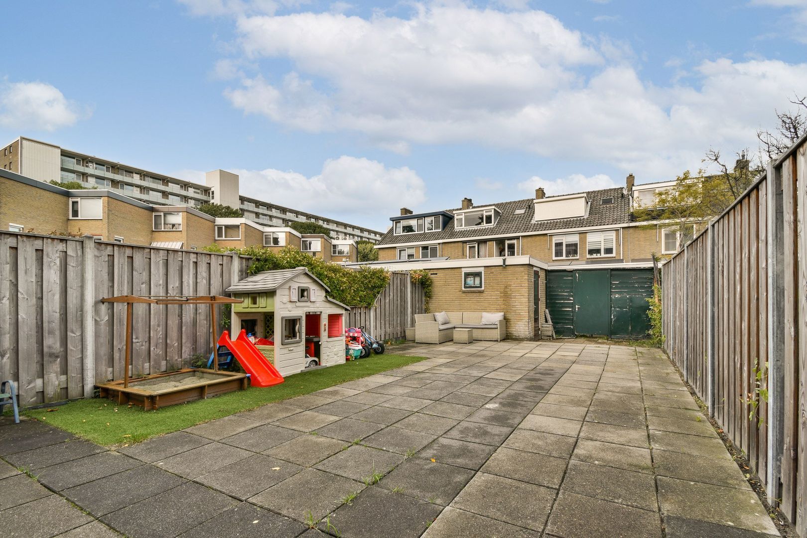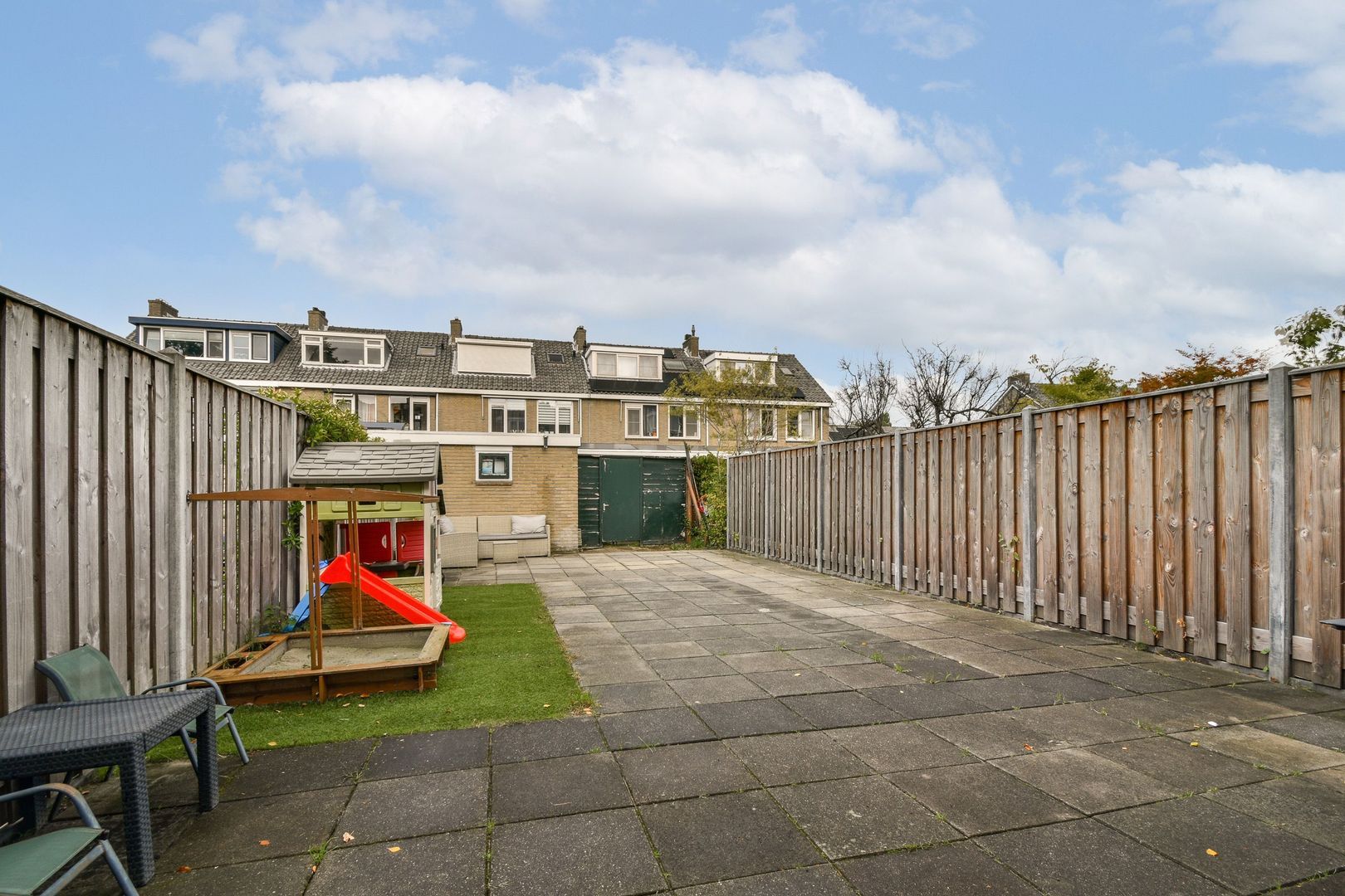Voortuin van ca. 5 meter diep en een royale achtertuin van ca. 15,5 meter diep en 6 meter breed. De tuin is gelegen op het noorden, maar dankzij de diepte geniet je de hele dag van de zon. De achtertuin is onderhoudsvriendelijk aangelegd met kunstgras en bestrating, en beschikt over een stenen berging (ca. 7,5 m²) met betonvloer en elektra. Via een gezamenlijke steeg is er een praktische achterom.