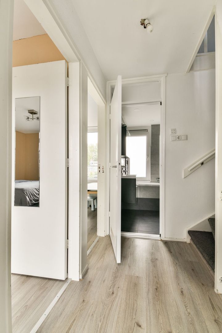 De overloop met laminaatvloer biedt toegang tot drie ruime slaapkamers van respectievelijk ca. 15,5 m², 13,2 m² en 7 m². De voorslaapkamer is voorzien van nieuwe kunststof kozijnen en een praktische kastenwand. De kleinere slaapkamer beschikt over draai-/kiepramen en een aansluitpunt voor een wastafel, terwijl de hoofdslaapkamer aan de achterzijde eveneens een kastenwand heeft. Aan de voorzijde bevindt zich de moderne badkamer van ca. 5,5 m², uitgerust met een douchecabine, comfortabel ligbad, tweede hangend toilet, wastafelmeubel, handdoekradiator, plafond met inbouwverlichting en een raam dat zorgt voor daglicht en mechanische ventilatie.