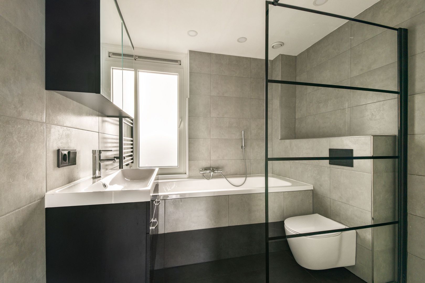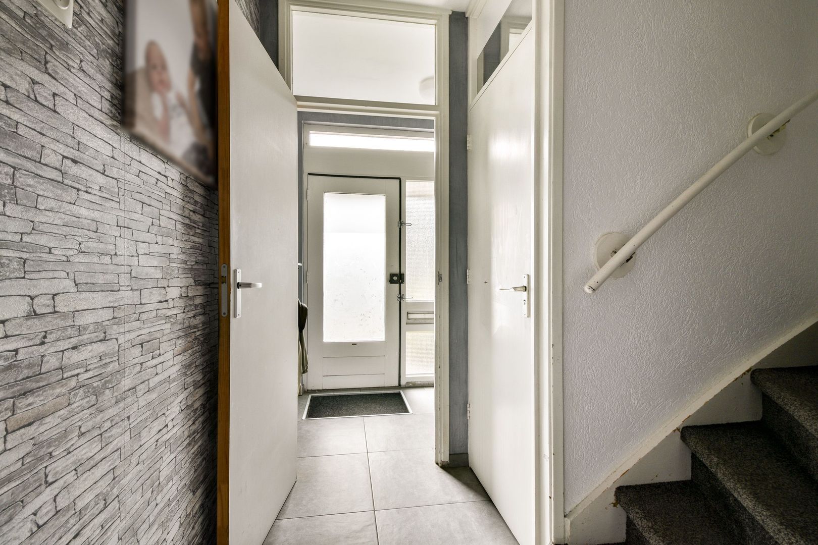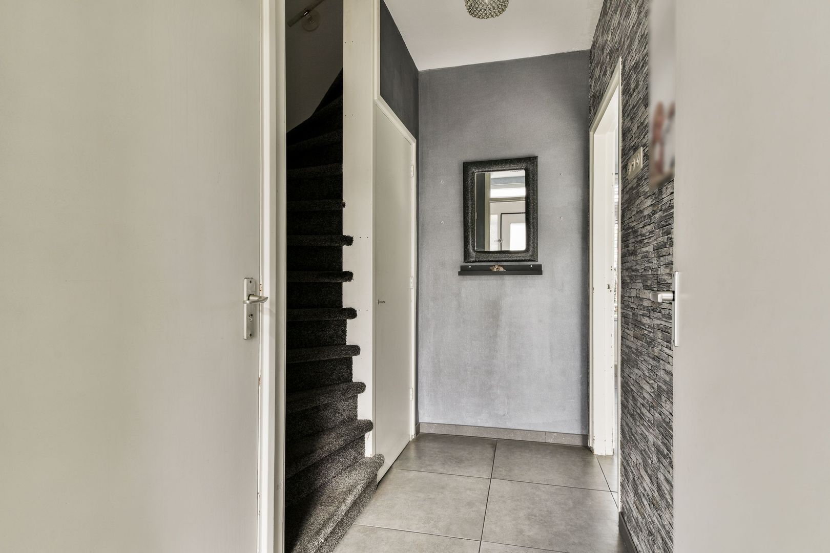 Ruime hal met meterkast en tochtdeur naar de gang, modern toilet (recent betegeld) met fontein, trapkast en toegang tot de woonkamer. De hal, entree, woonkamer en keuken zijn voorzien van vloerverwarming en een antracietkleurige tegelvloer.