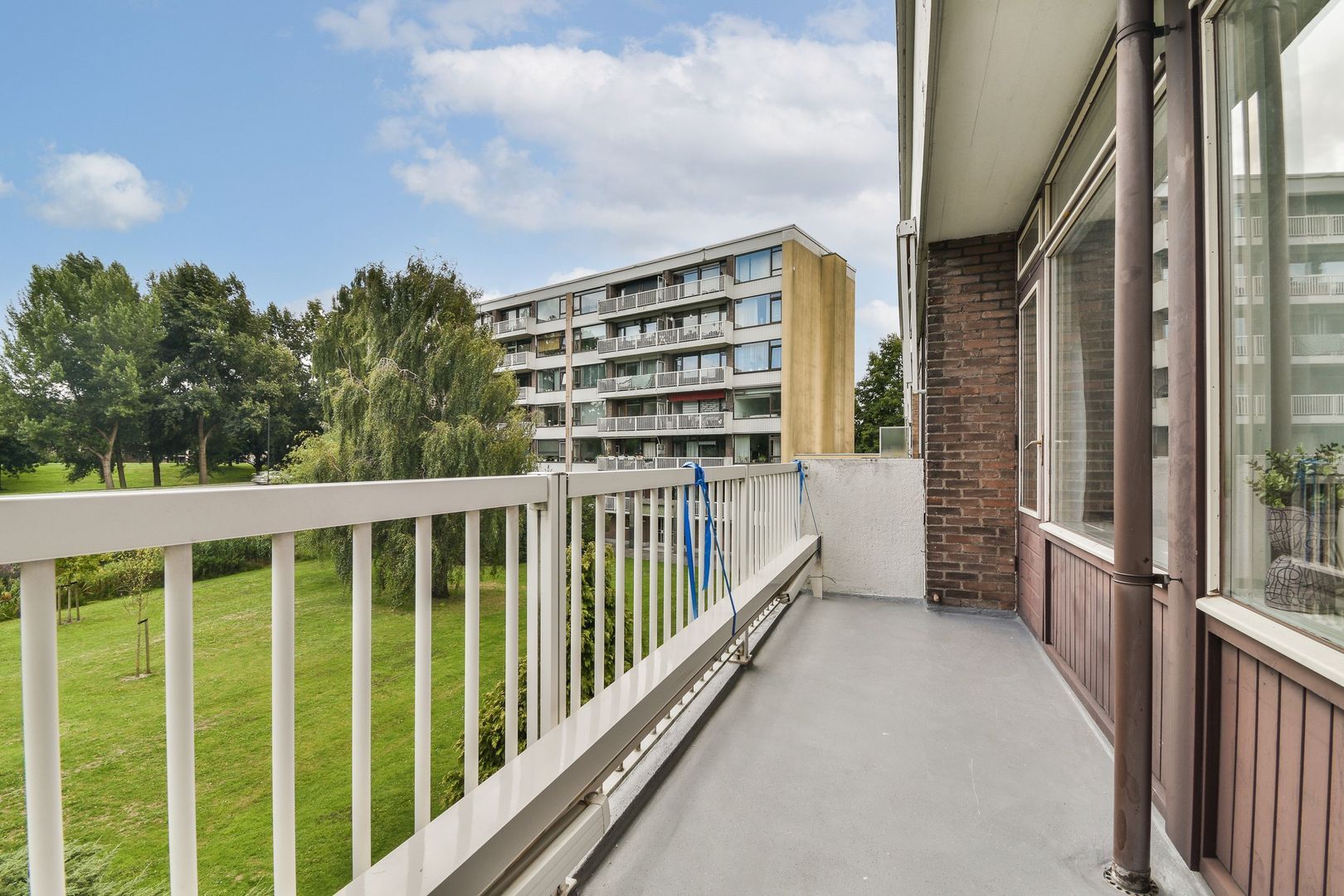 Hoofdslaapkamer van 13 m2 met groot raam. Slaapkamer van 11 m2 en van 9 m2, beide met toegang naar royaal tweede balkon van 8 m2, heerlijk op het zonnige zuidwesten gelegen, betegeld en met zonwering (los) , waterkraan en aluminium hekwerk.
