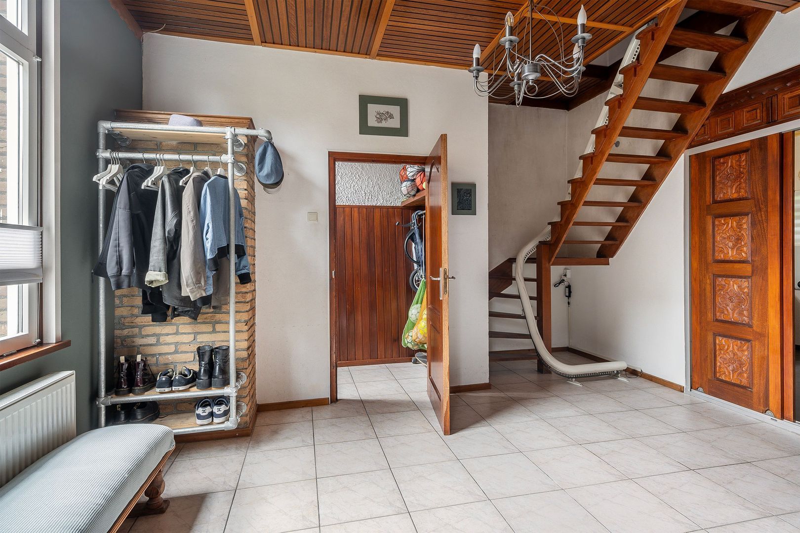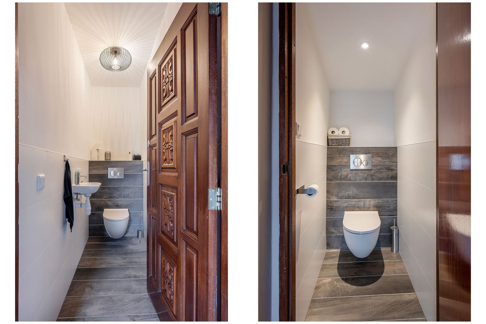 Entree, tochtportaal, ruime ontvangsthal met voldoende ruimte voor de garderobe. Ruim toilet welke deels is voorzien van moderne betegeling en er is gekozen voor een wandcloset met fontein.