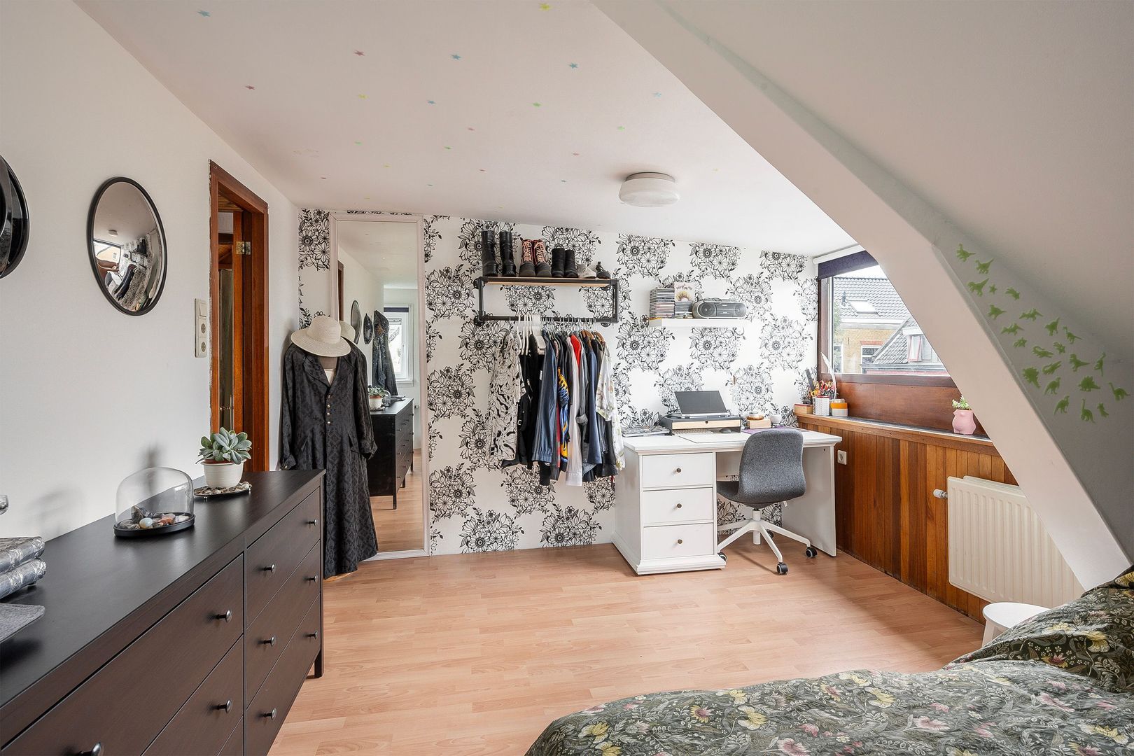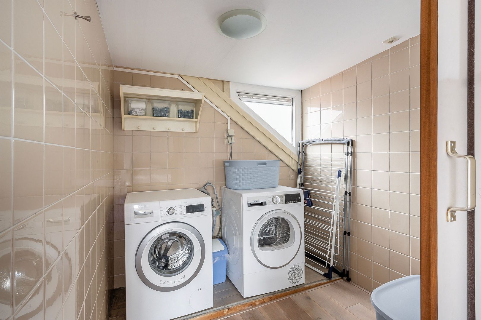 Achter de hoofdslaapkamer is een wasruimte gemaakt en via de overloop is het dakterras toegankelijk.