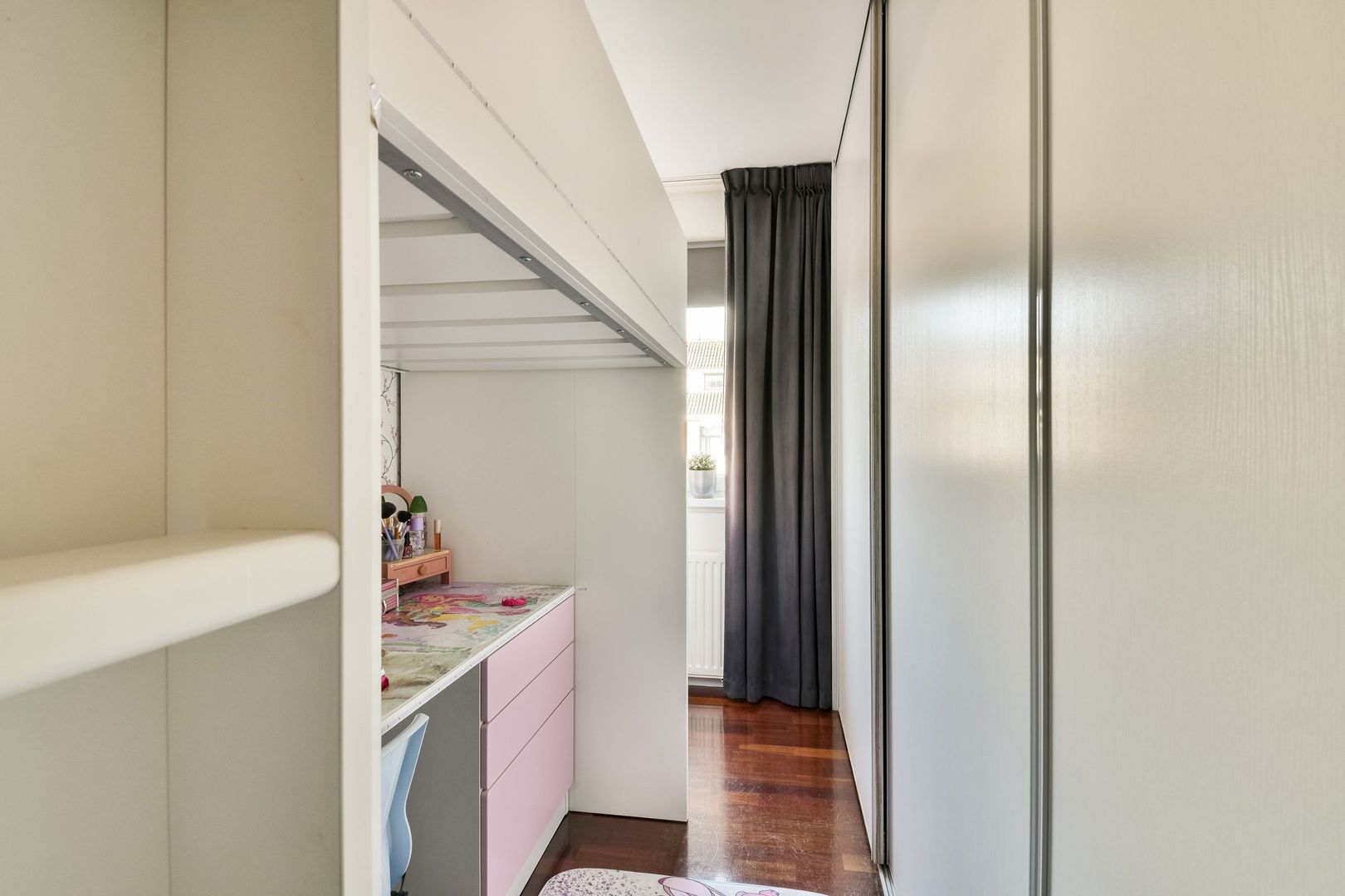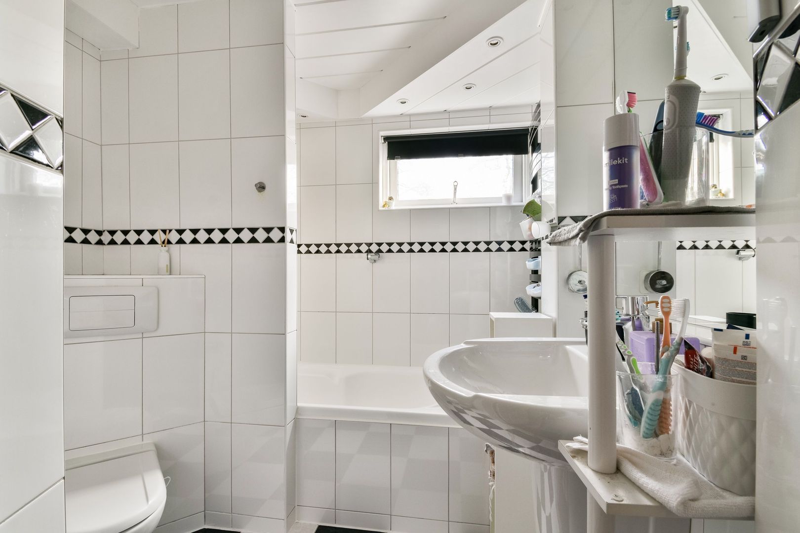 Royale overloop, zijslaapkamer van 9,2 m2 met parketvloer en schuifkastenwand. Grote achter slaapkamer van ca. 12 m2 met parketvloer. Ruime slaapkamer aan de voorzijde van ca. 11 m2. Gemoderniseerde badkamer geheel betegeld met witte wandtegel met zwarte details, ligbad met douchedeel, thermostaatkraan, voorzien van zwevend toilet, wastafel met grote spiegel en handdoekenradiator.