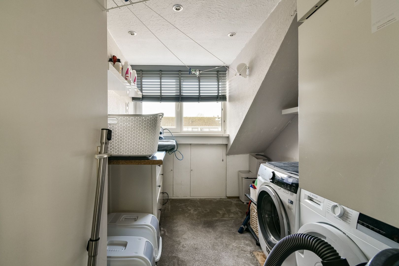 Overloop met bergruimte. Waskamer van ca. 6 m2 met wasmachineaansluiting en opstelling CV-ketel. Slaapkamer van 10 m2 met dakkapel met kunststof ramen en bergruimte in schuine dakvlak, doorlopend naar aansluitende achterslaapkamer van 11 m2 met kunststof dakkapel en rolluik.