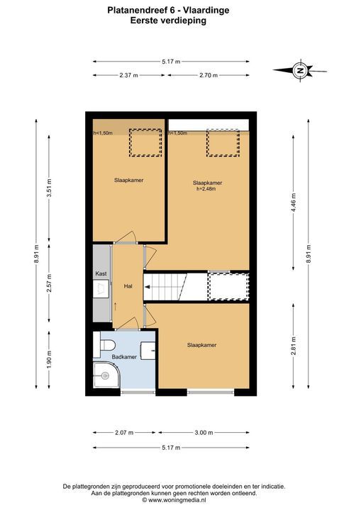• Het woonoppervlak van de woning is 89 m2. Inhoud is 301 m3.