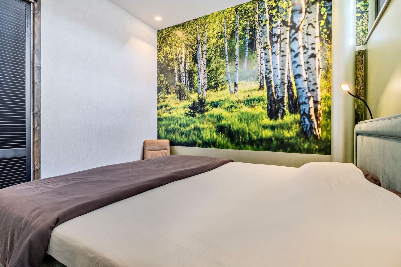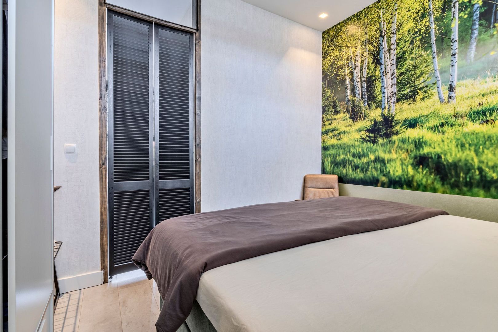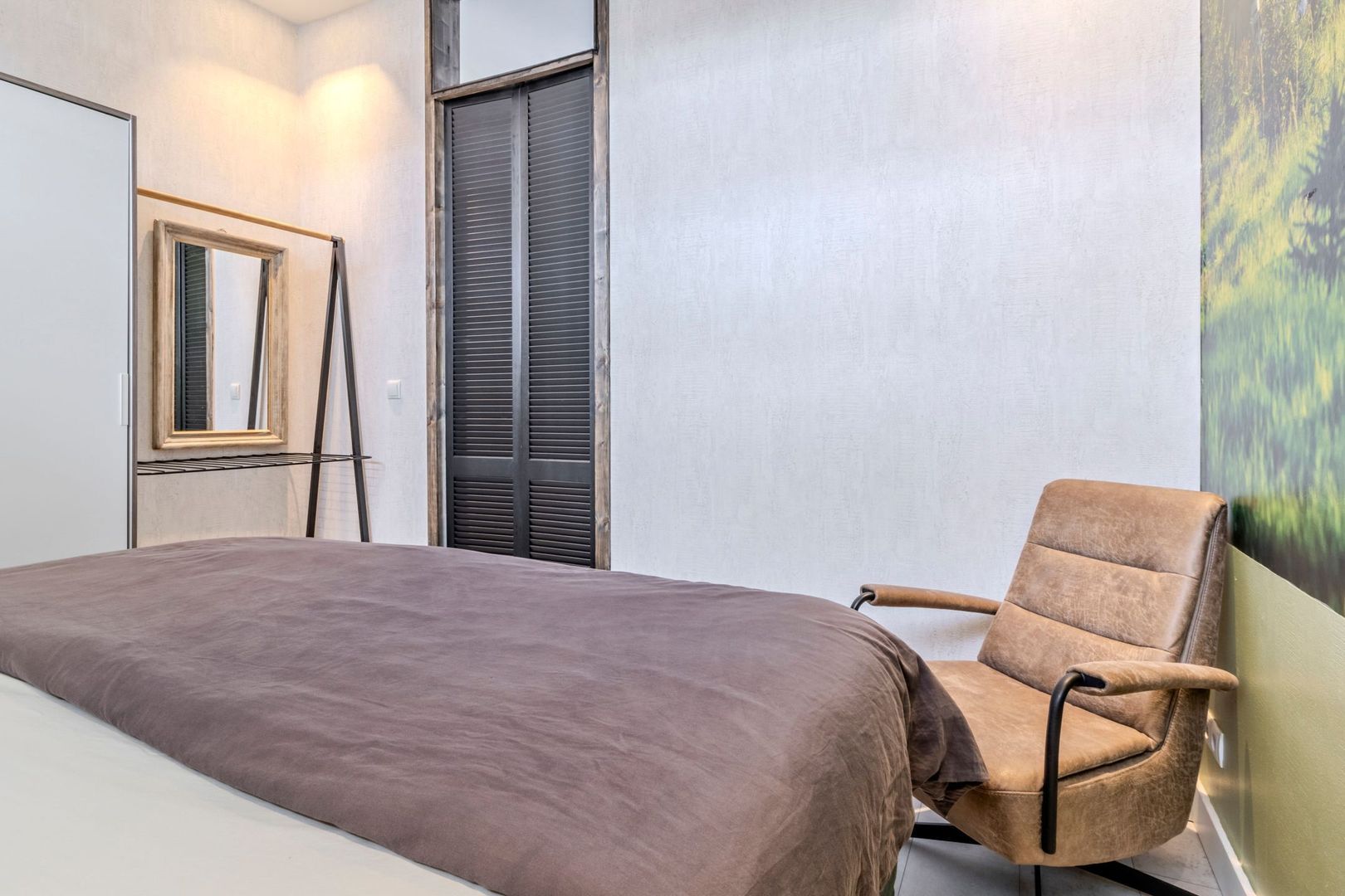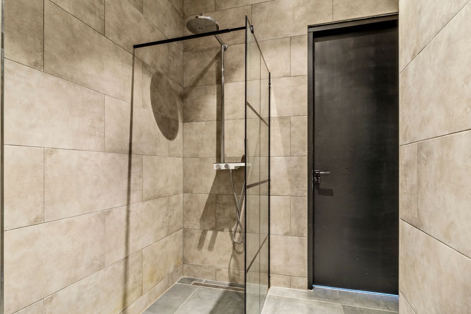 Slaapkamer van ca. 11 m2 met inbouwspots. De luxe geheel betegelde badkamer van ca. 6 m2 is voorzien van een inloopdouche, hangend toilet en wastafelmeubel.