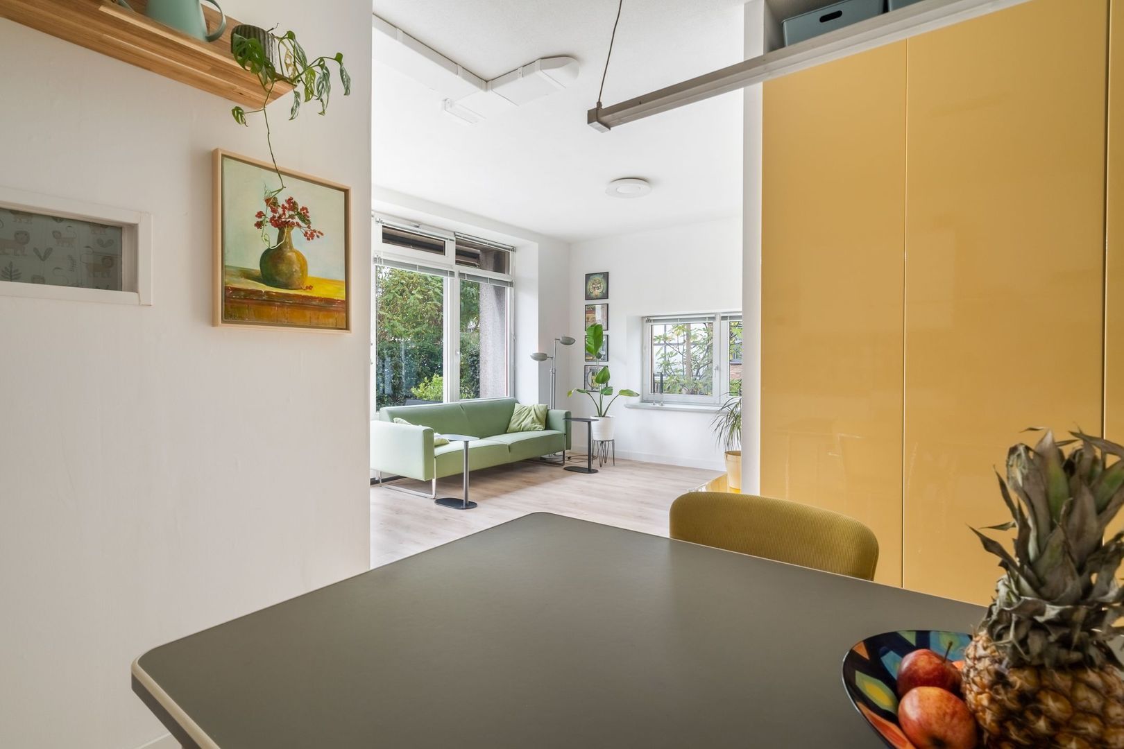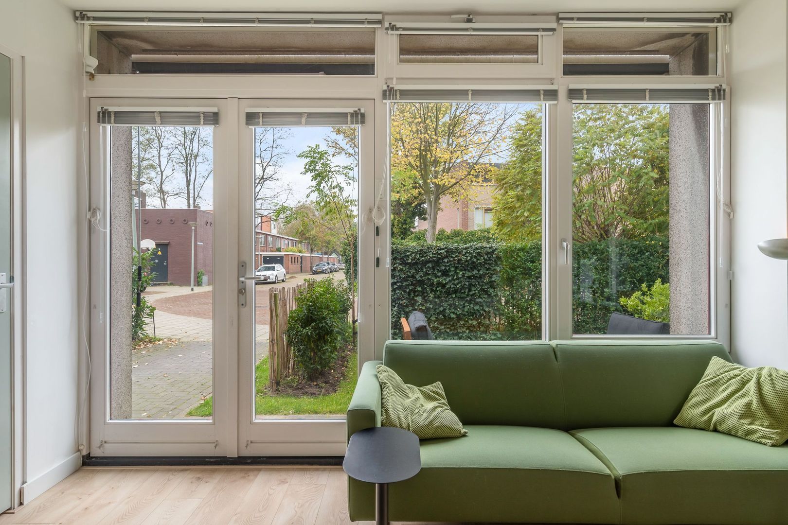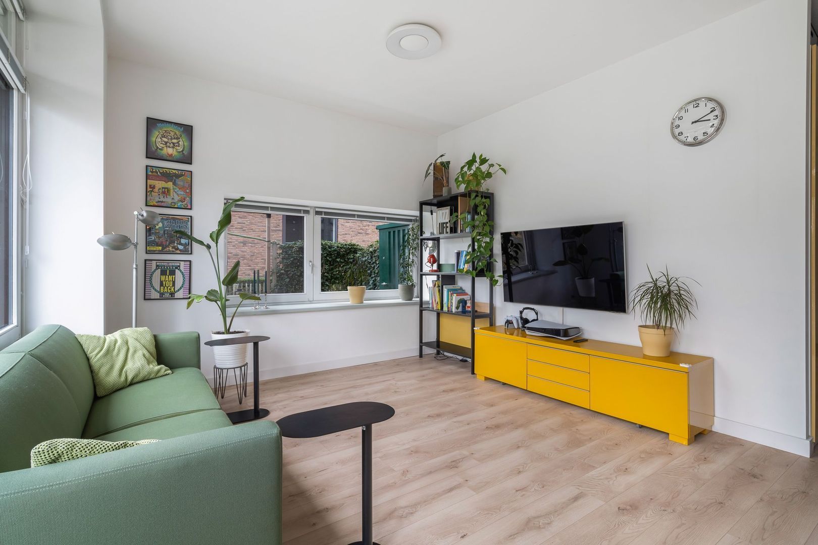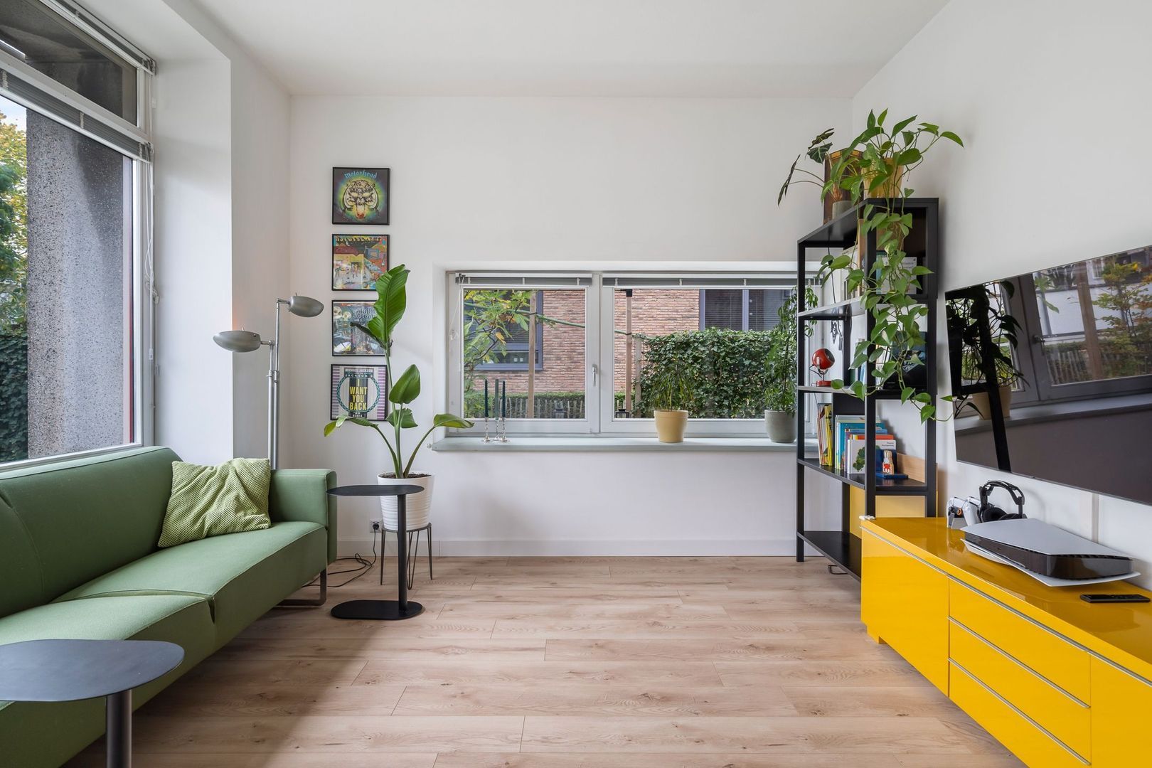 De woonkamer telt 16 m2 en heeft veel natuurlijk lichtinval door de grote raampartijen. De woonkamer is, indien gewenst, te vergroten middels het bijtrekken van de 2e slaapkamer.