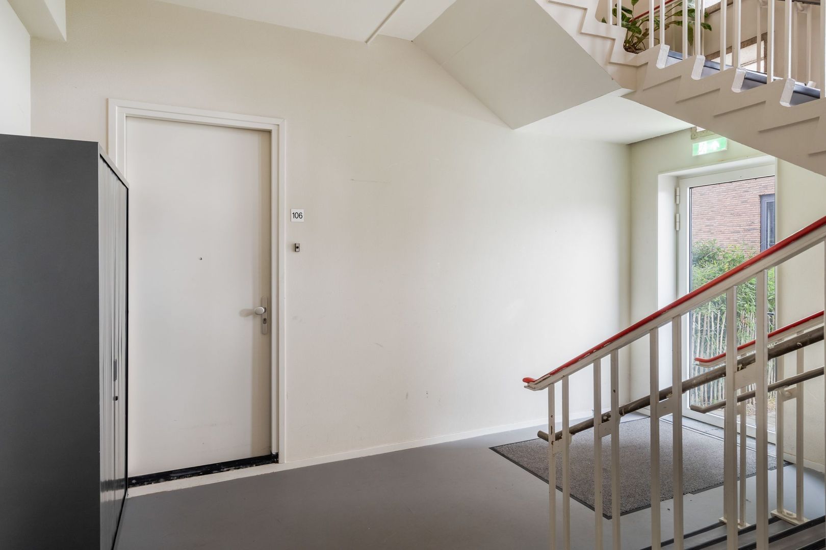 Afgesloten entree met bellentableau. Via de centrale hal krijgt u toegang tot de woning.