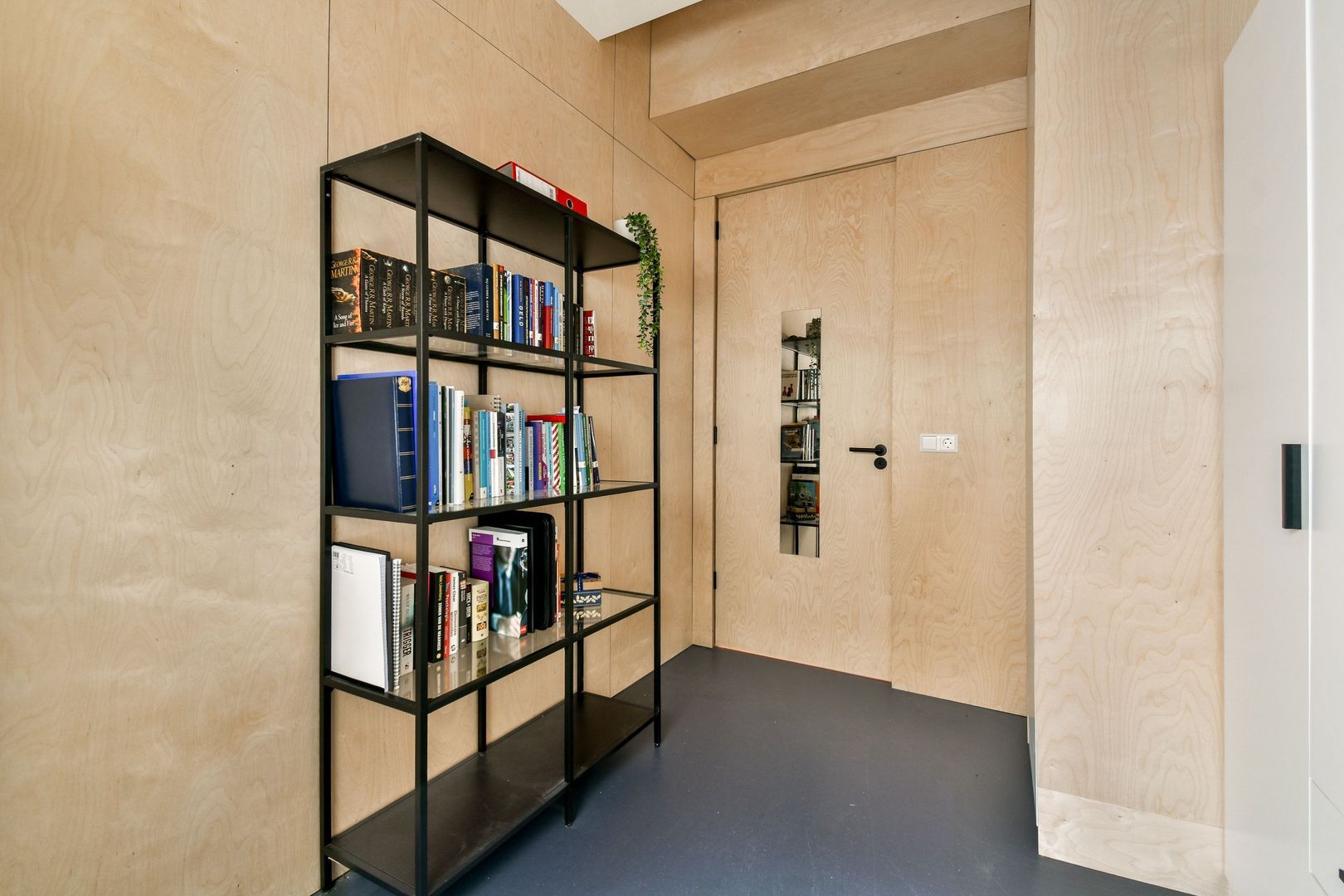 Entree woning met vaste kasten en meterkast. Woonkamer met open keuken van in totaal ca. 28 m2. De woonkamer heeft openslaande deuren naar de achtertuin en er is een werkhoek gecreëerd. Plafonds met ingebouwde verlichting (Philips Hue). De moderne en luxe keuken is voorzien van diverse bergruimten en inbouwapparatuur zoals koelkast, vriezer, kokend waterkraan, vaatwasser, combioven met magnetronfunctie en inductiekookplaat met geïntegreerde afzuiging. De kokend waterkraan is van Grohe, de overige inbouwapparatuur is van SMEG. Achter de keuken zijn de warmtepomp en WTW-installatie (balansventilatie) weggewerkt.