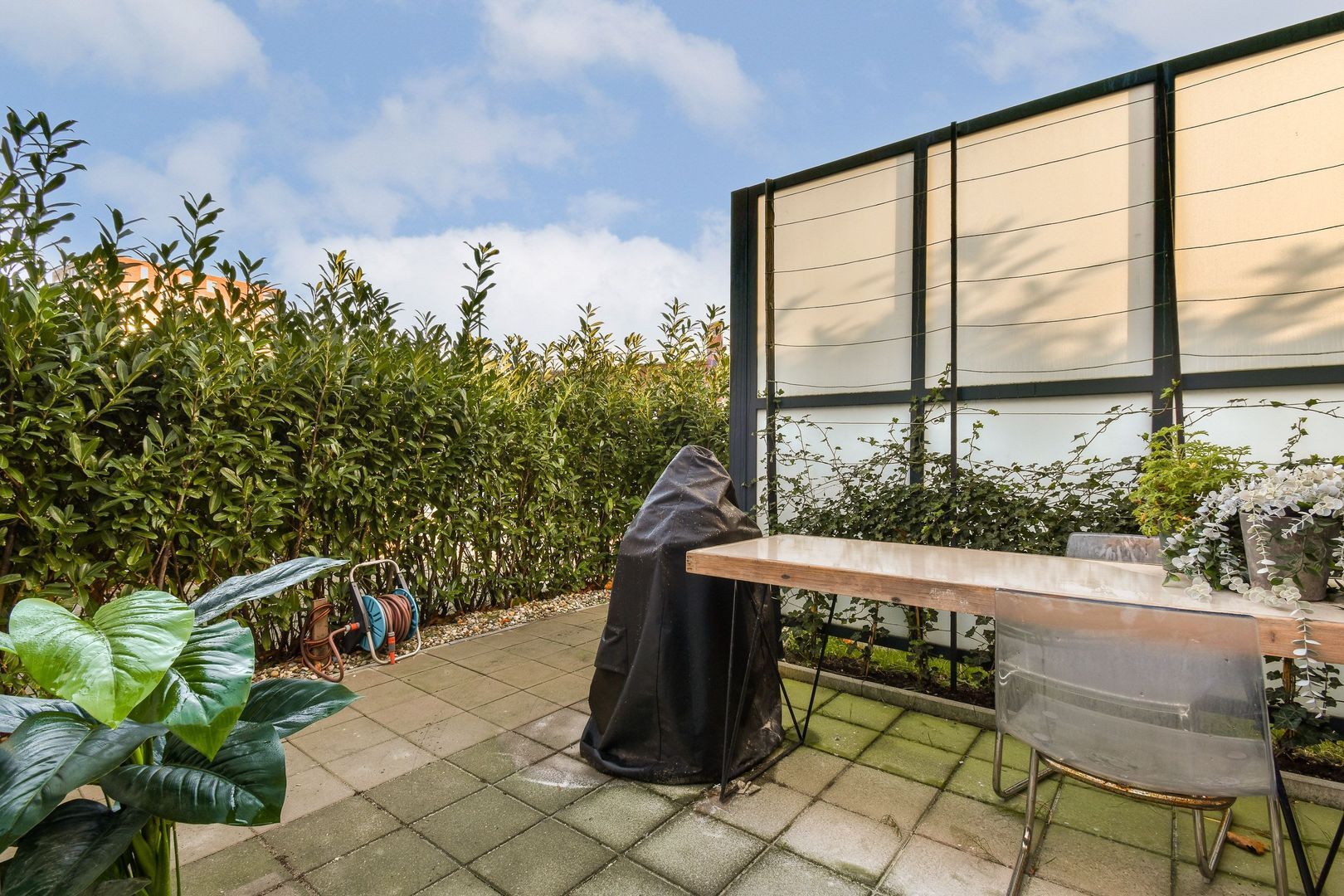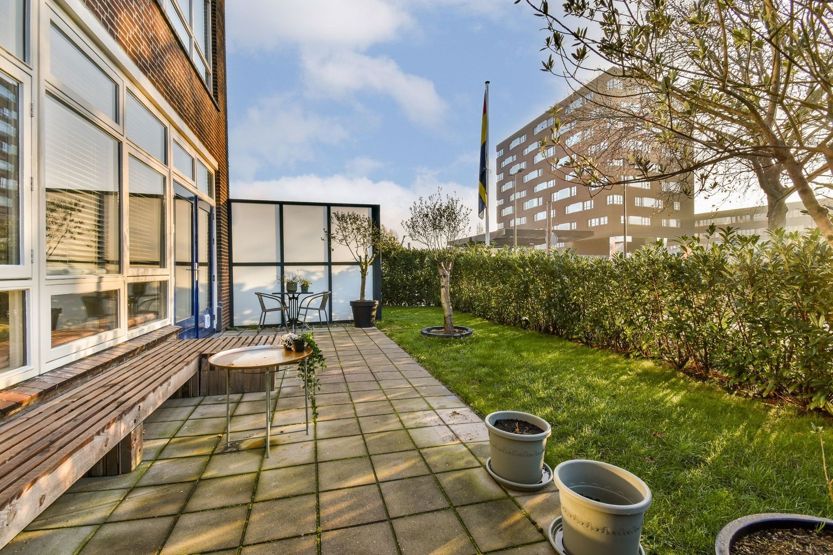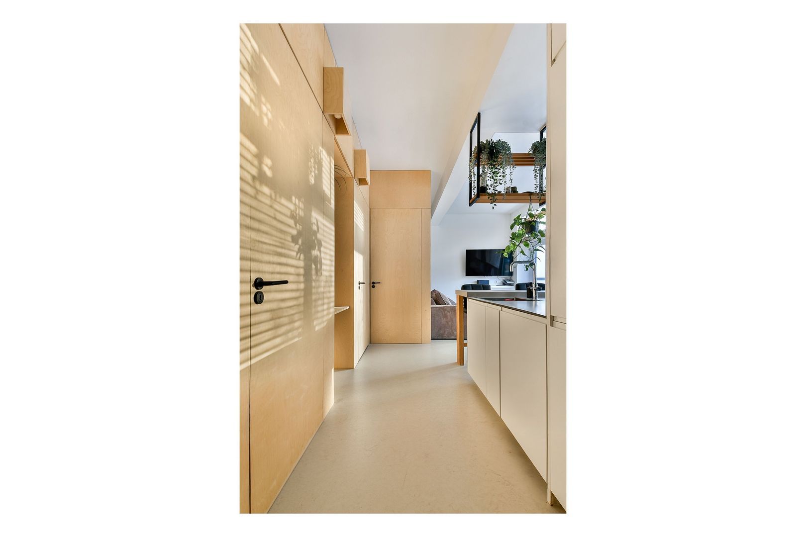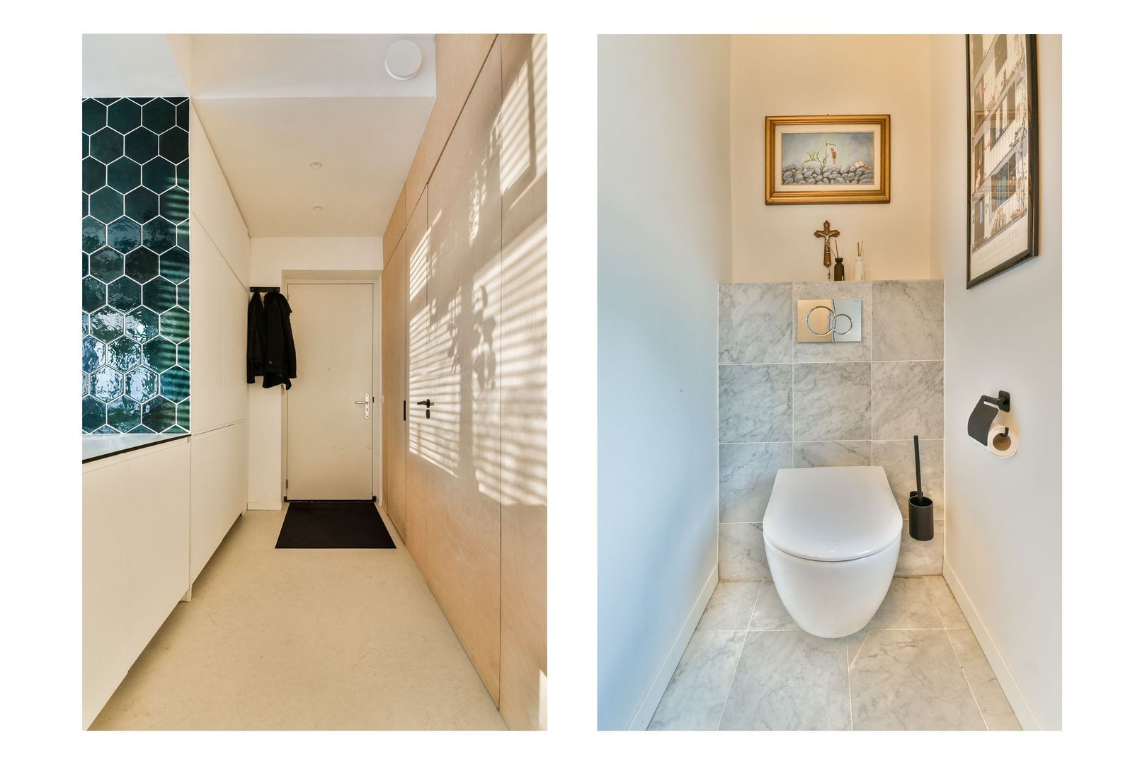Afgesloten entree met bellentableau. Via de centrale hal (met twee aan de woning toegekende opbergruimtes) krijgt u toegang tot de woning.