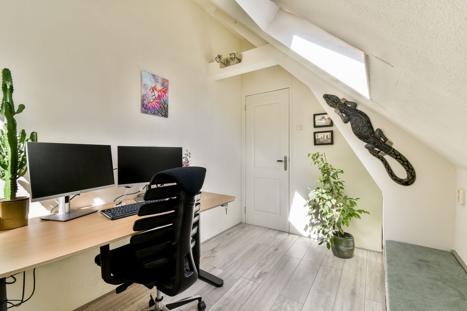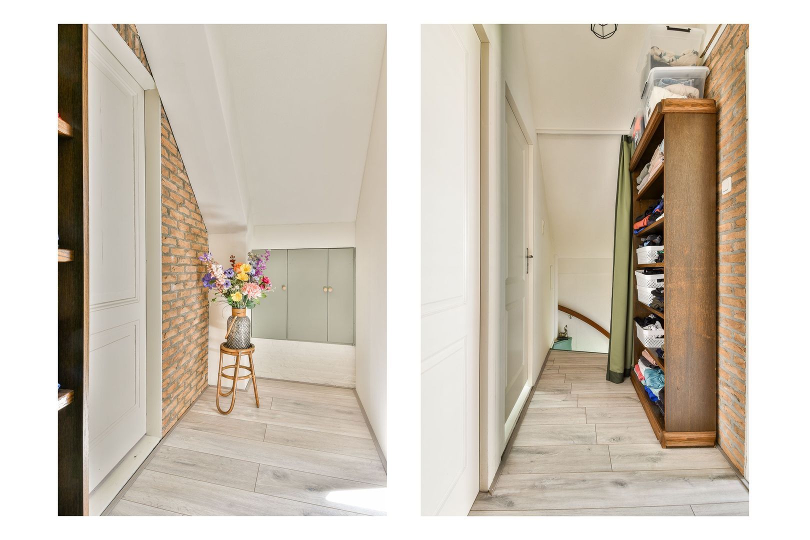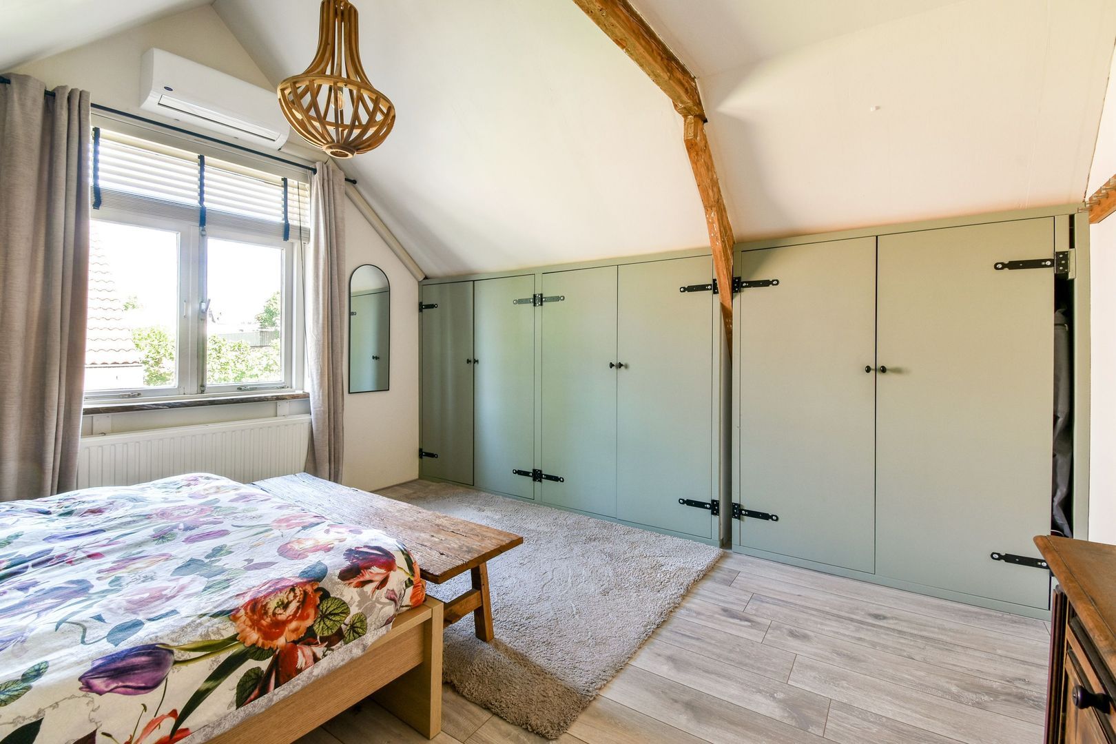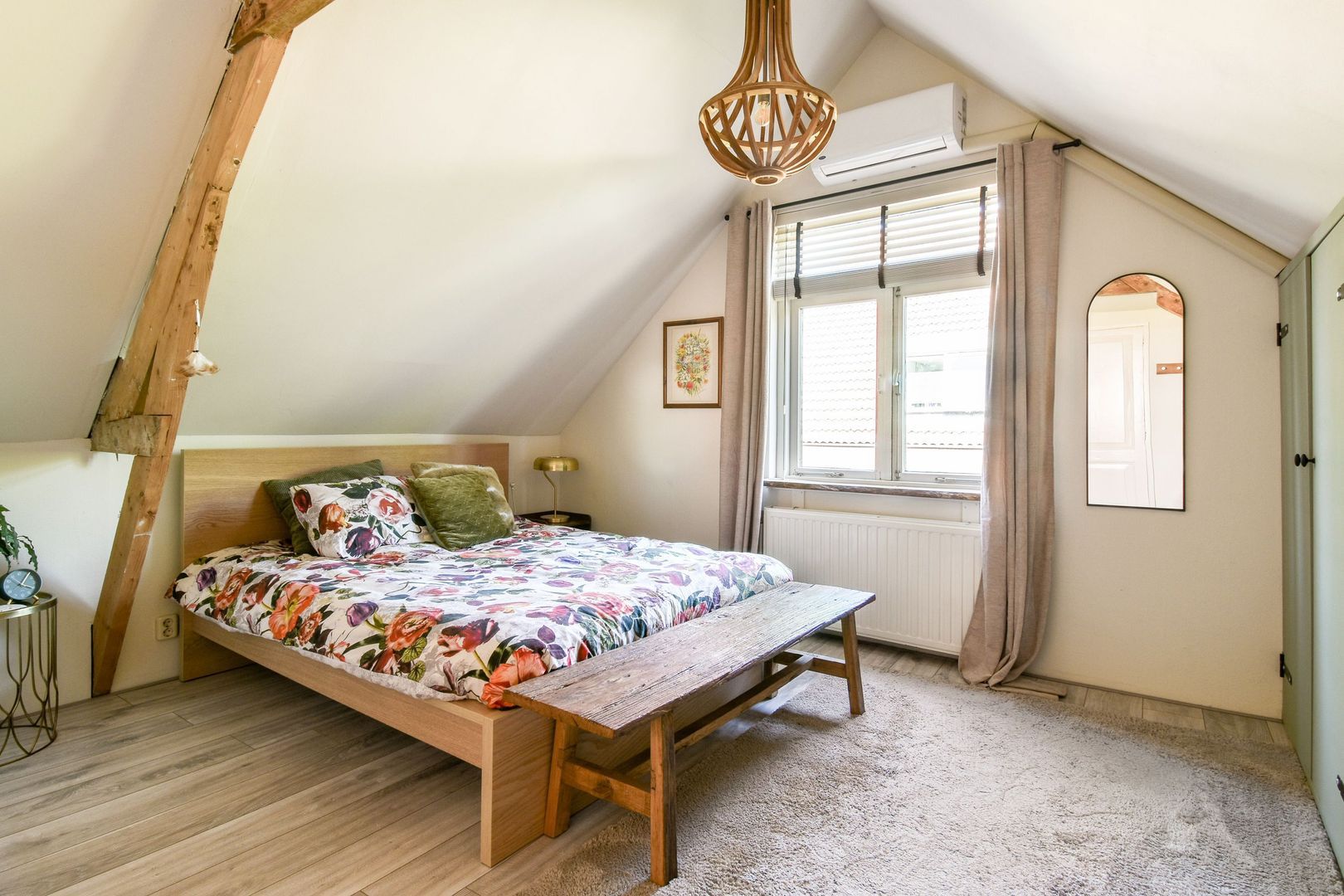 Ruime overloop met toegang tot alle vertrekken op deze verdieping. De sfeervolle hoofdslaapkamer is aan de achterzijde gesitueerd en heeft een vloeroppervlak van 19 m2 en een gebruiksoppervlak van ca. 14 m2. Er is optimaal gebruik gemaakt van de ruimte door de vaste kasten welke op maat gemaakt zijn. Voor extra comfort is er een airco geïnstalleerd die zowel kan verwarmen als koelen.