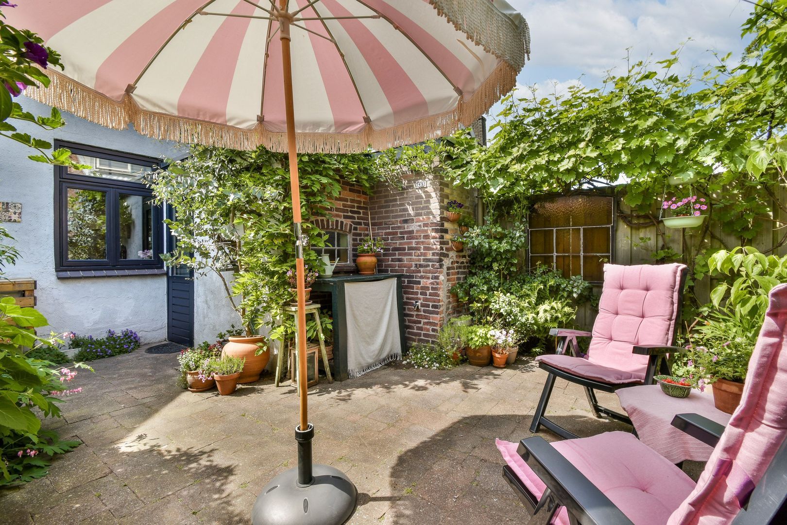 Via de bijkeuken bereikt u de achtertuin. De achtertuin is zeer verzorgd en heeft een fijne mix tussen betegeling en groenvoorziening.