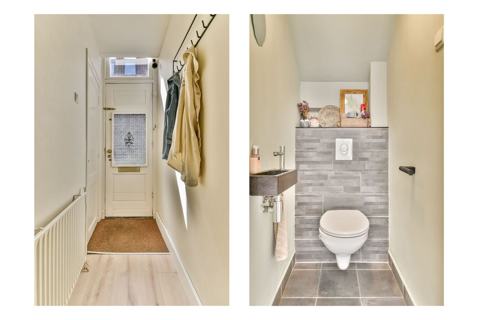 Entree, hal, toilet (met wandcloset, fontein en moderne betegeling),