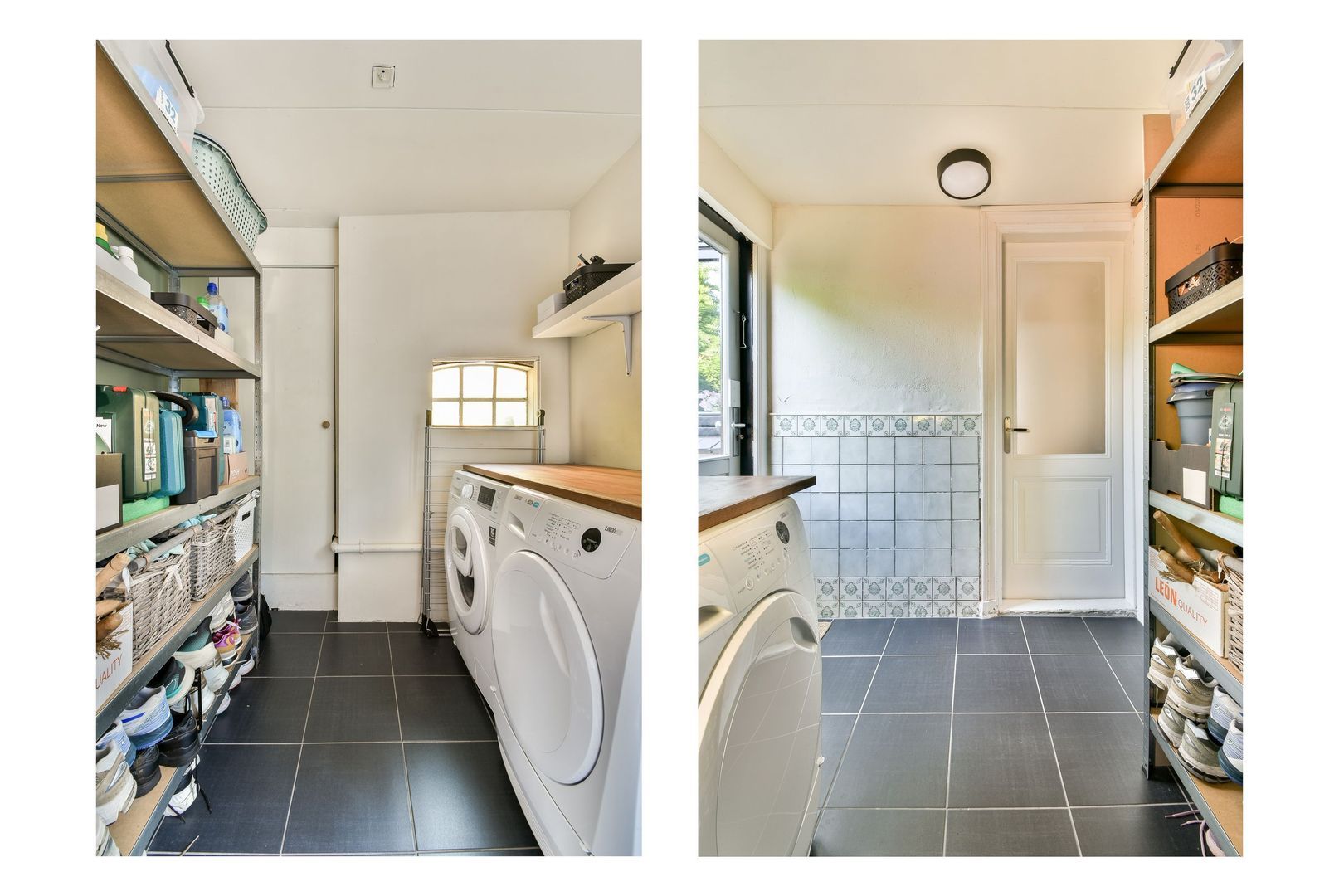 Naast de keuken vindt u aan de ene zijde een voorraadkast en aan de andere zijde een bijkeuken met wasmachineaansluiting en opstelling CV-ketel geplaatst. De dakbedekking van de bijkeuken is in 2024 vernieuwd.